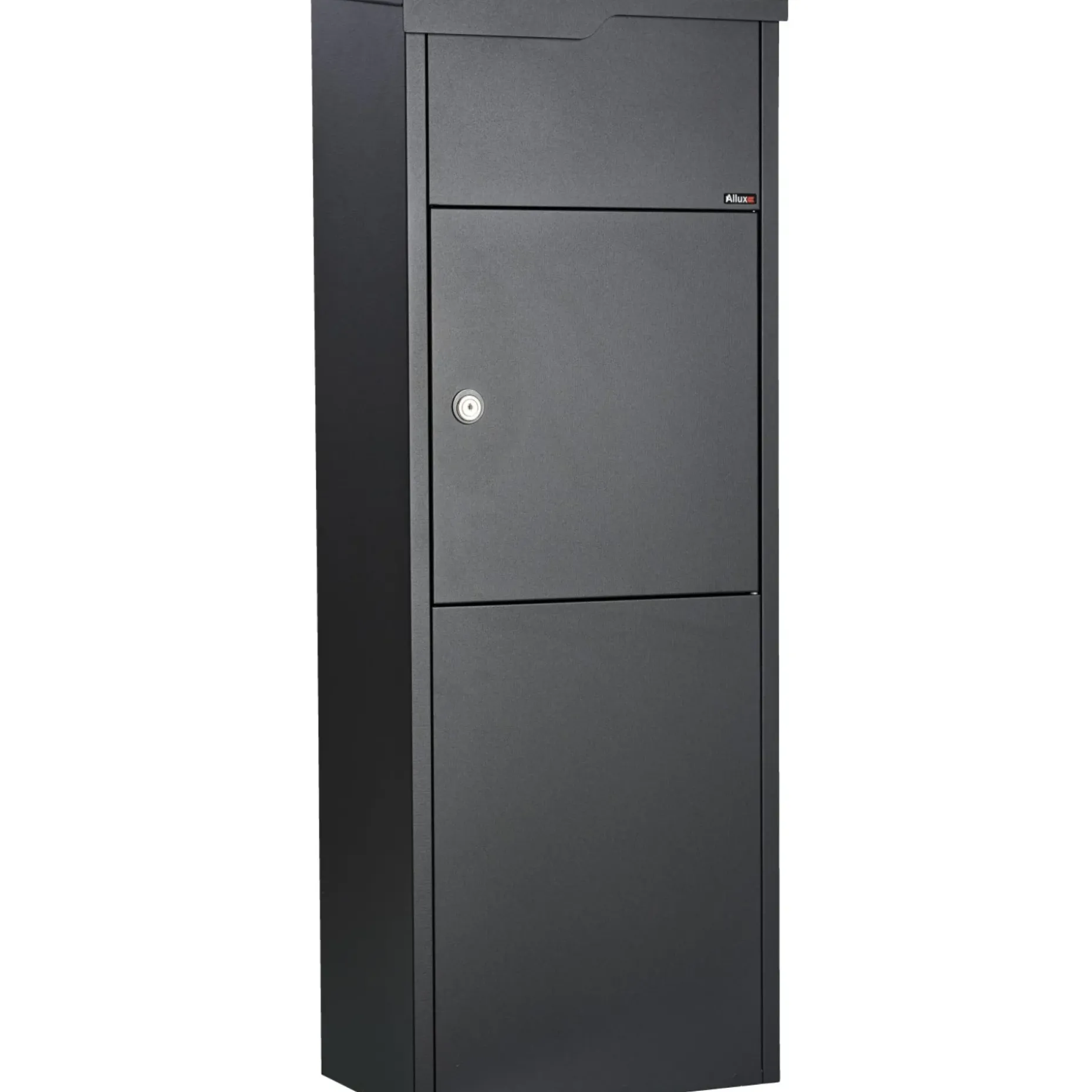 Enkel løsning til meget post. ALLUX PAKKEPOSTKASSE 650S i sort er en robust pakkepostkasse i flot design, fremstillet i galvaniseret pulverlakeret stål. Den kan modtage meget store mængder post og pakker, hvilket gør den velegnet til husstande med hyppige forsendelser.