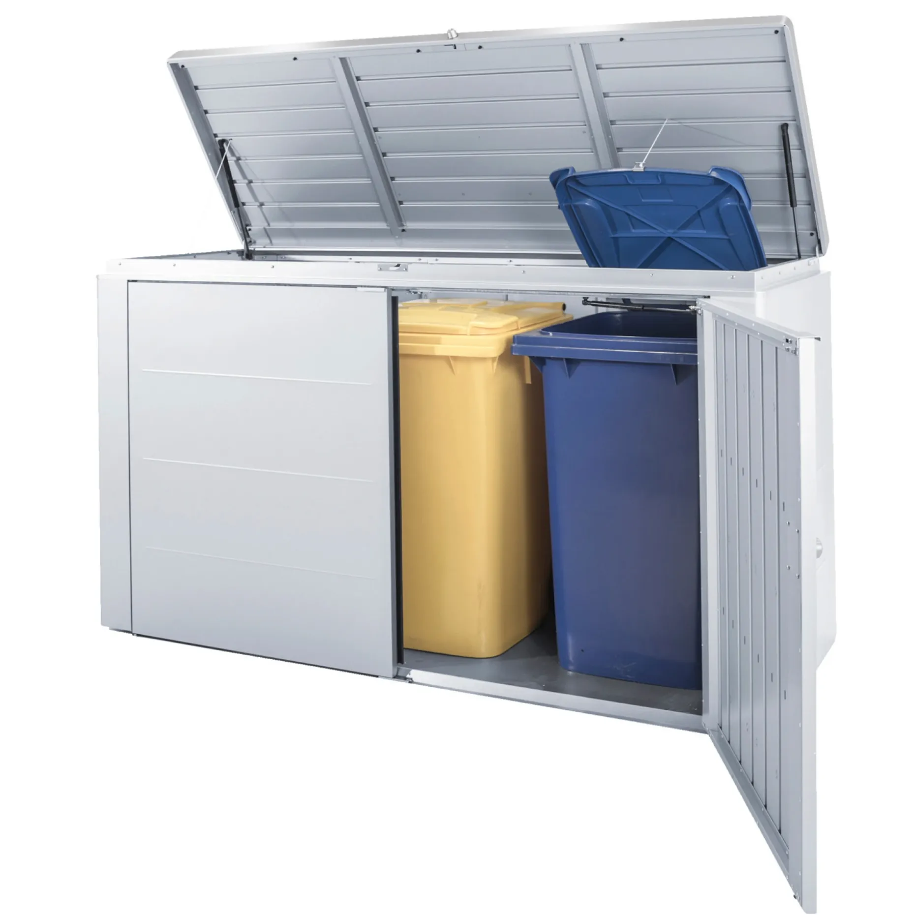 Låget og to dobbeltdøre giver nem adgang, og der medfølger en holder til låget til 3 affaldsspande.
