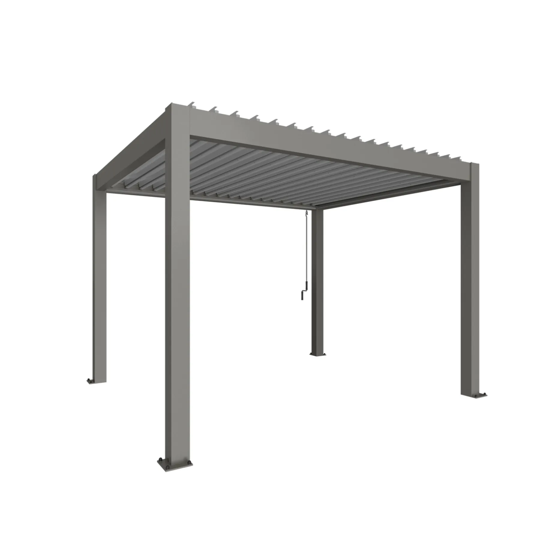 Denne pergola i kvartsgrå/sølv leveres med klare målangivelser, så du nemt kan planlægge placering og dimensionering.