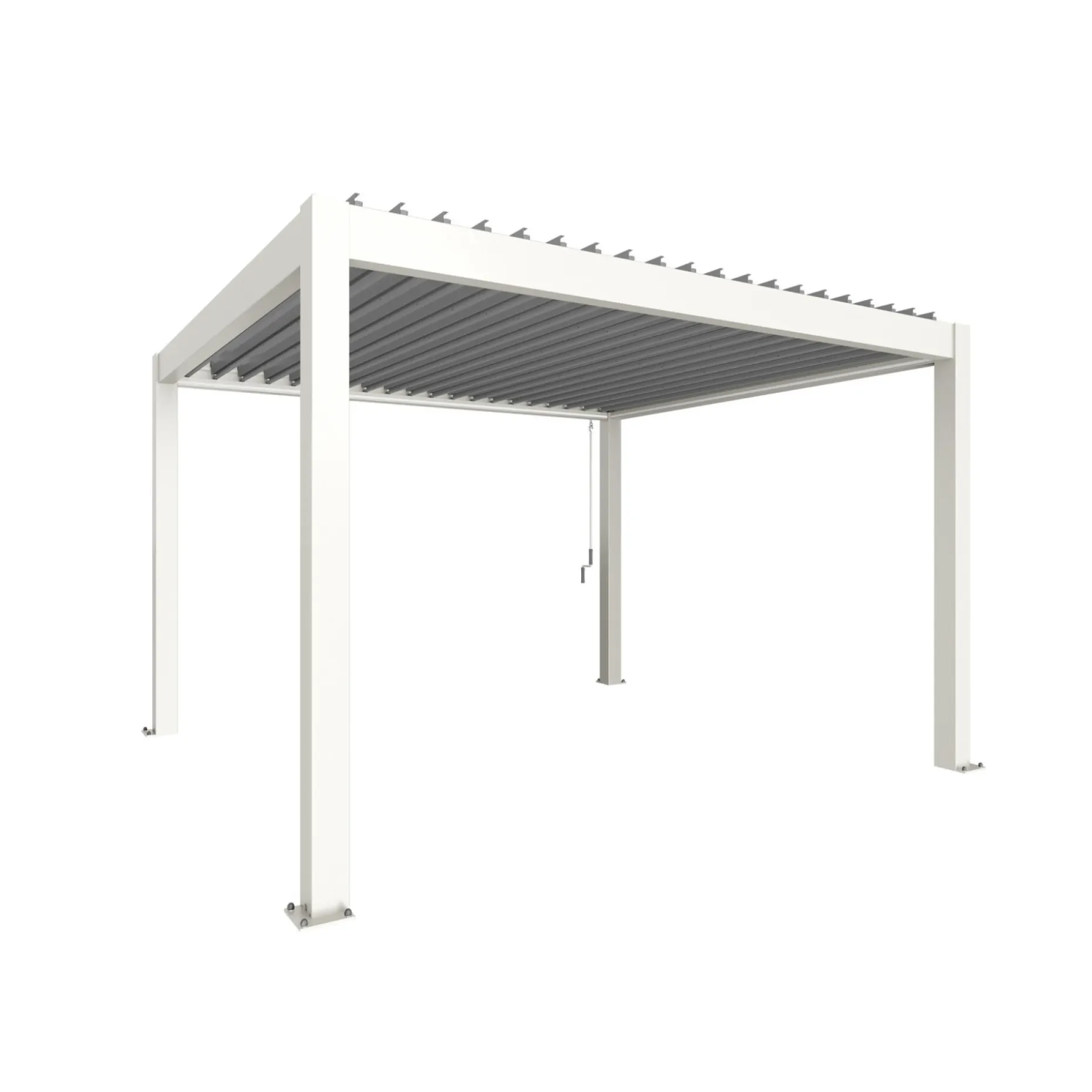 Pergola i hvid/sølv, velegnet til at etablere et afgrænset uderum ved boligen, terrasse eller i haven. Den angivne størrelse gør det muligt at planlægge placering i forhold til eksisterende bygninger og møblement.