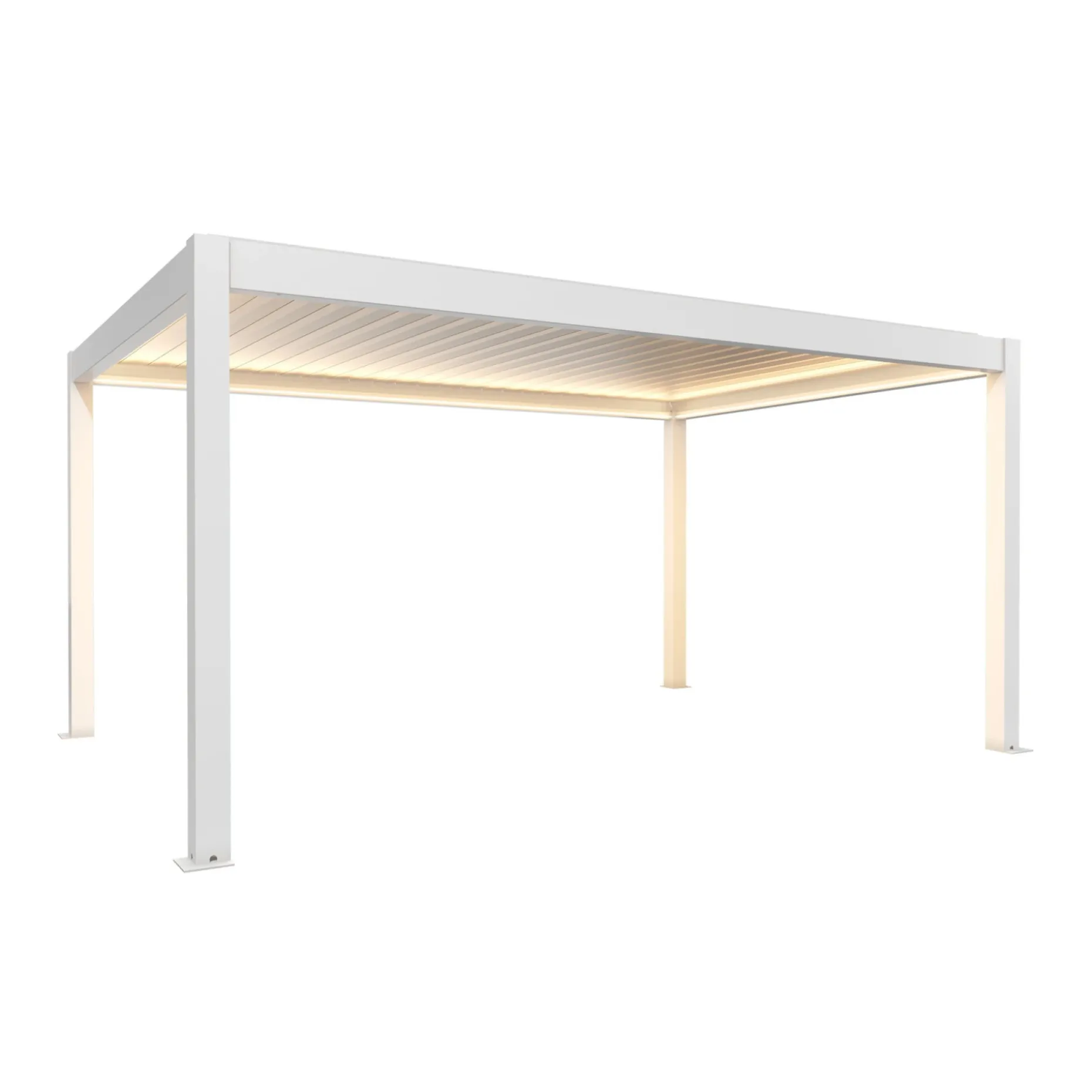 Denne BIOHORT pergola i hvid/sølv er designet til at skabe et markant udendørs rum med klare, dokumenterede mål.