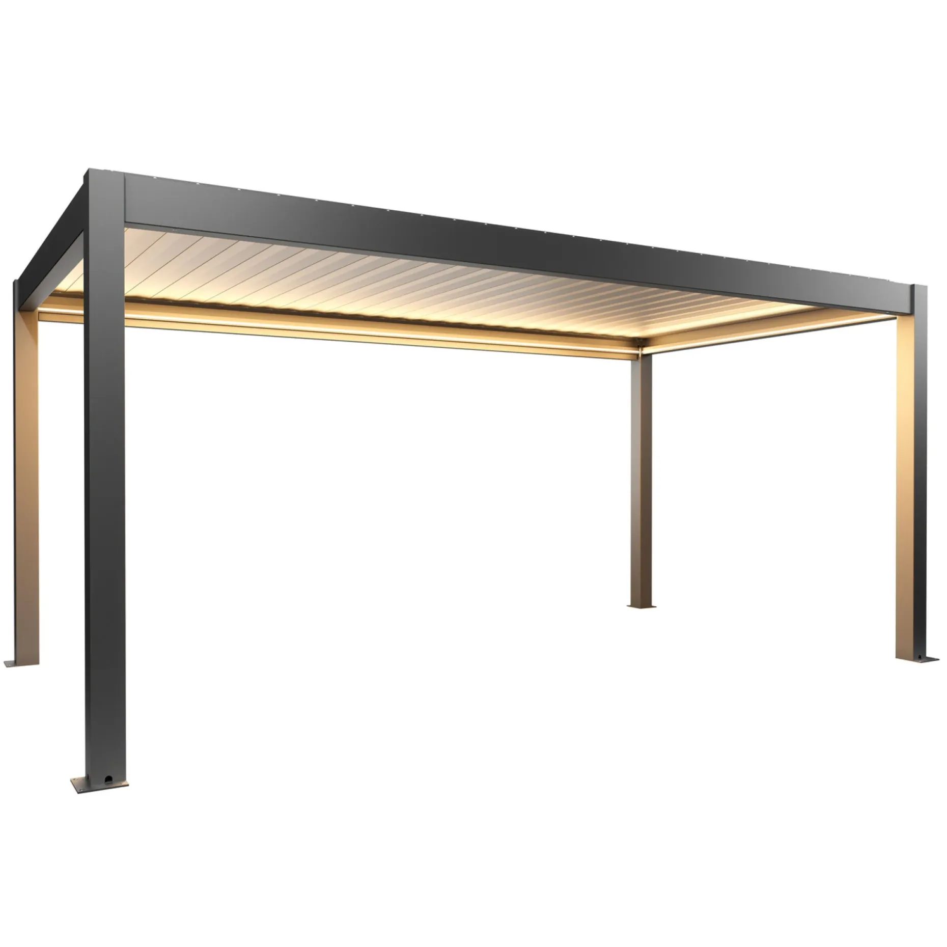 BIOHORT PERGOLA 5.53 X 3.12 M er en pergola i mørkegrå og sølv. Den fremstår med et neutralt, moderne udtryk, hvor farvekombinationen mørkegrå/sølv giver en diskret og holdbar visuel ramme.