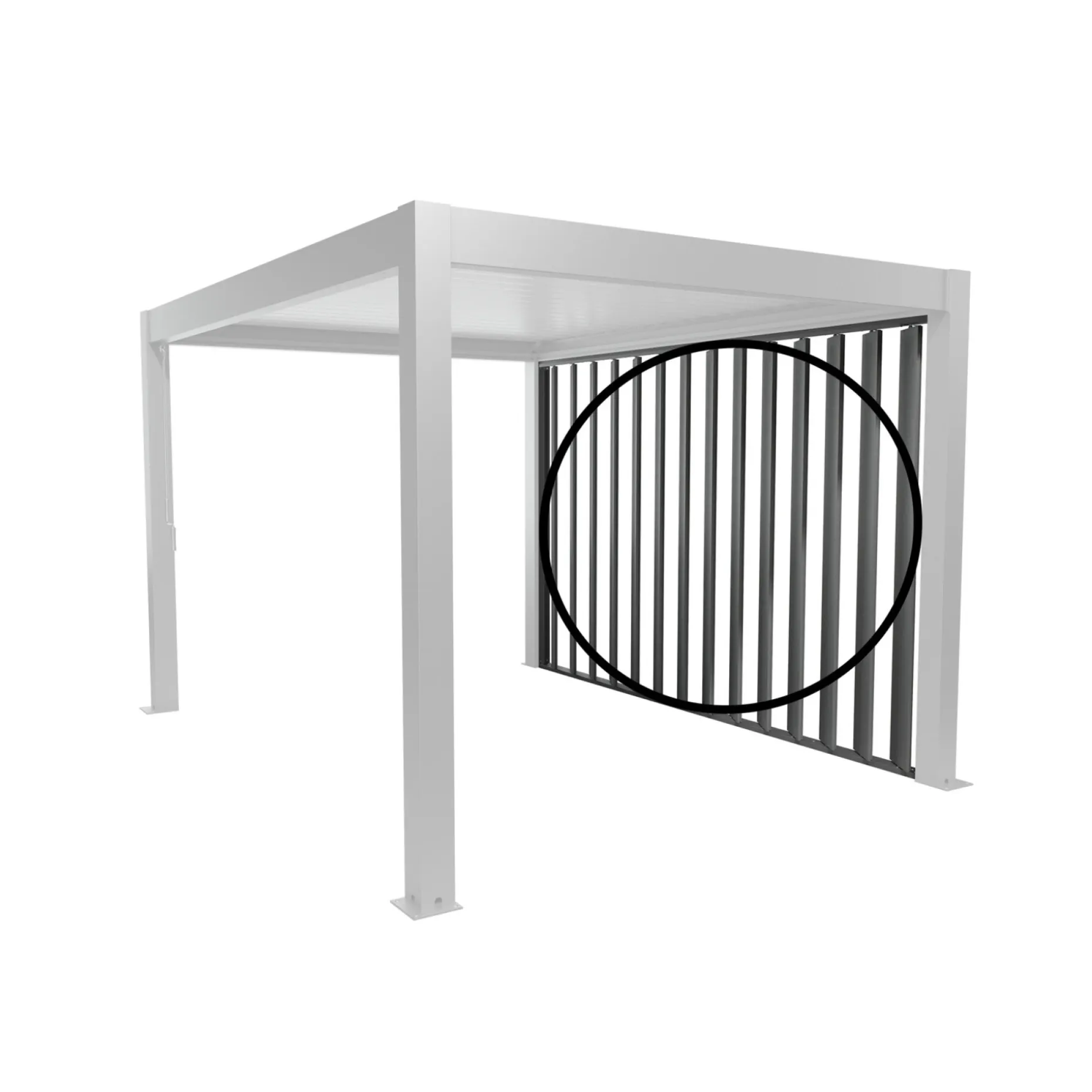 PERGOLA Louveret sidevæg 4m er en stilren sideløsning til pergolaer, udført i kvartsgrå.