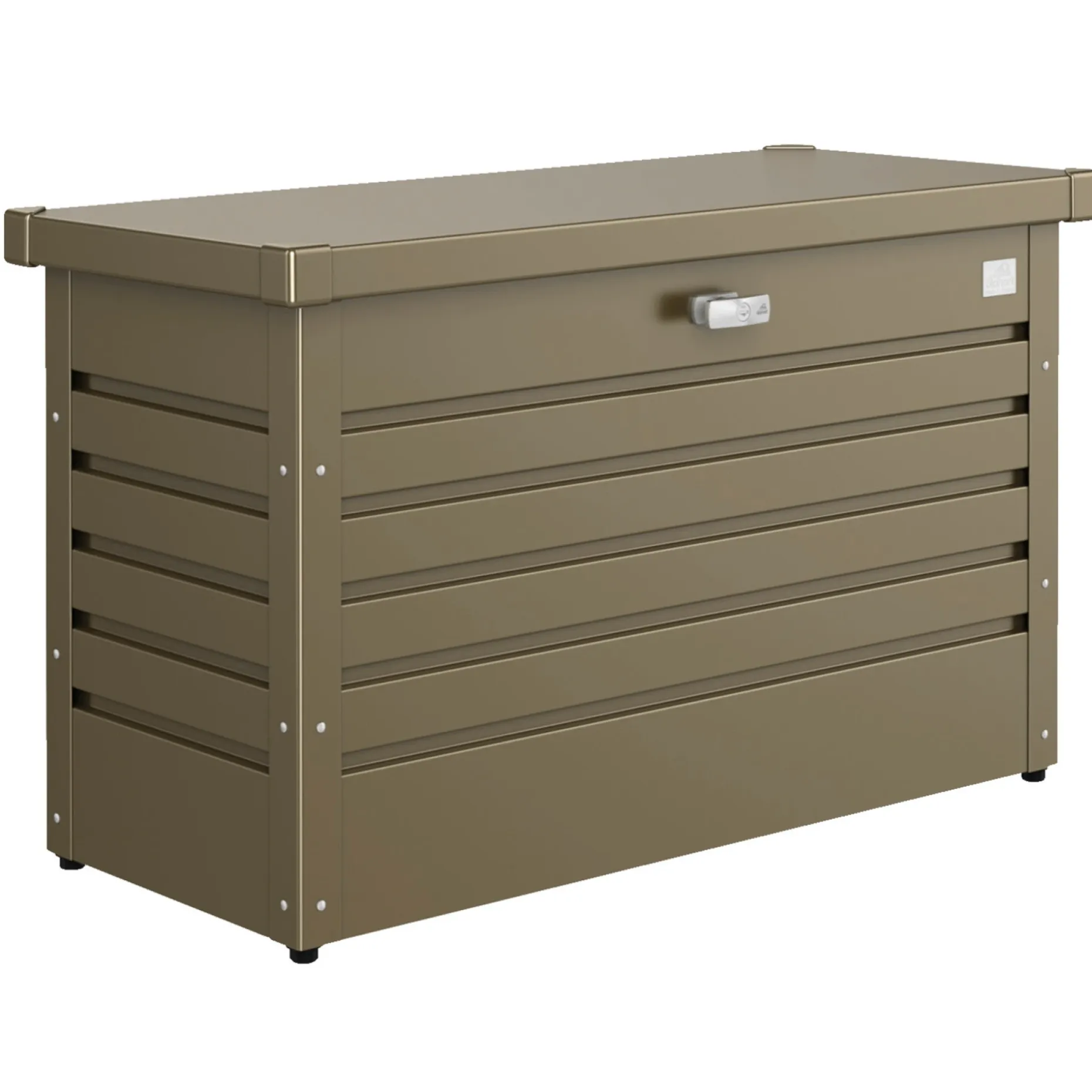 Den regntætte konstruktion beskytter hynder mod vejrlig, og den integrerede ventilation mindsker fugtophobning. Polyamid-belægningen og varmgalvaniseringen giver en holdbar overflade, der bevarer sit udseende over tid og kræver kun minimal rengøring og vedligeholdelse. Gasdæmperen sikrer nem og sikker adgang til indholdet. Perfekt til mindre udeområder.