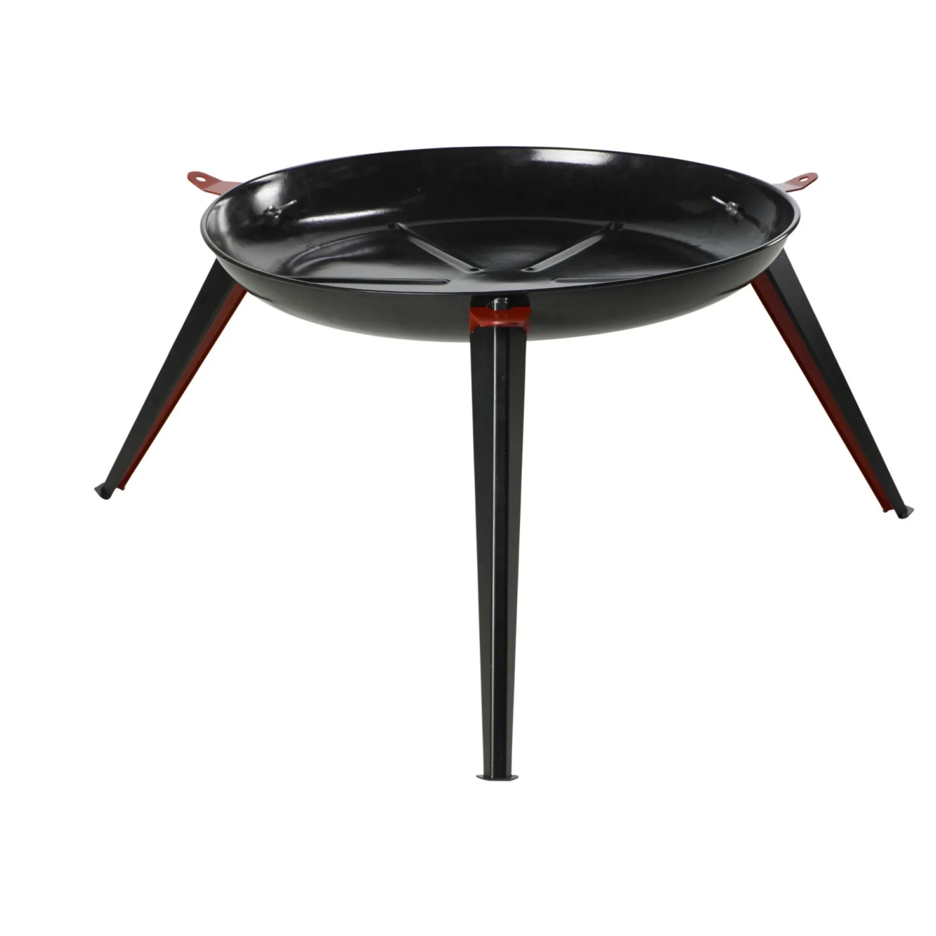 Bålfadet har 50 cm lange ben i sort/rød pulverlakering og en skål i sort emalje, som giver en holdbar og dekorativ overflade.