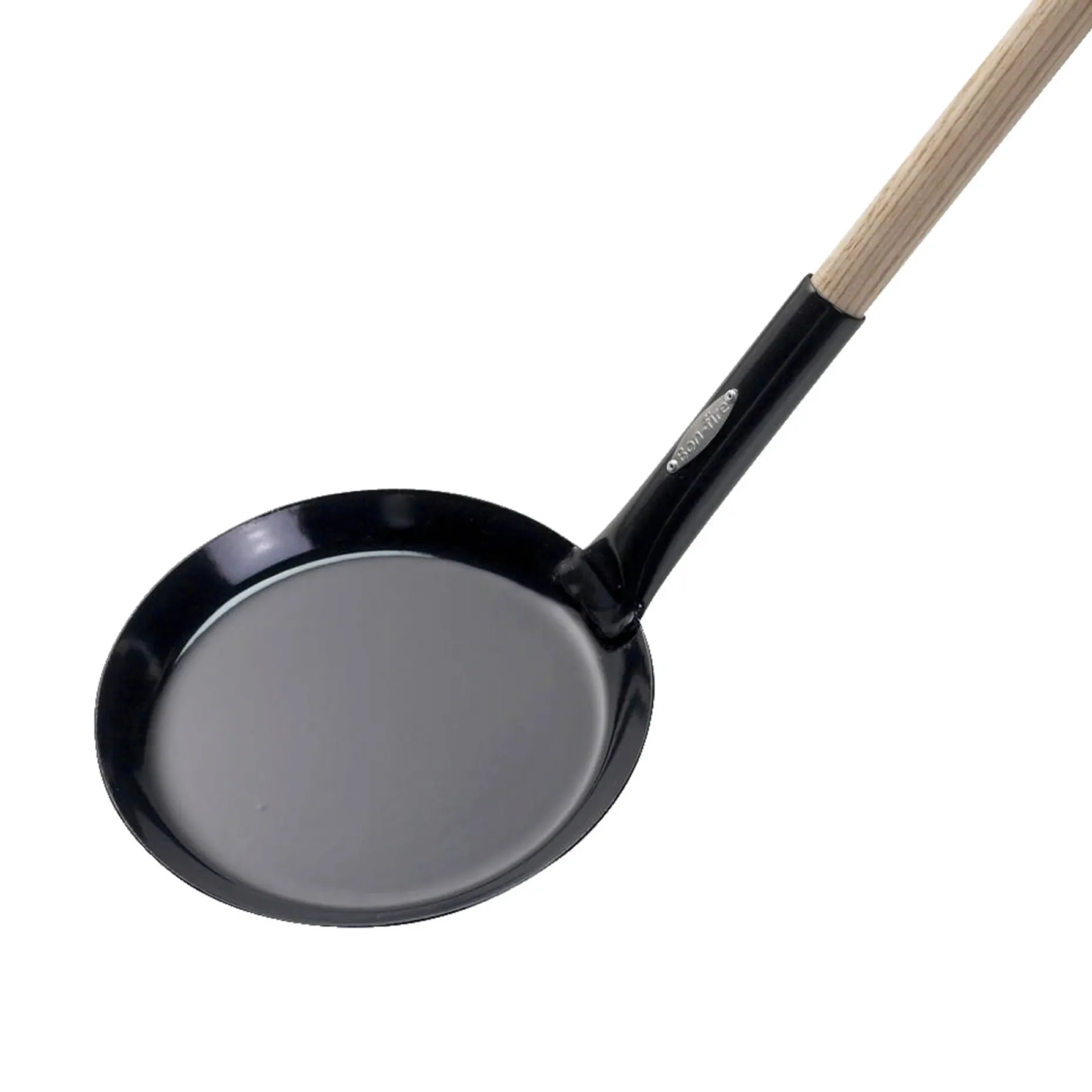 Bon-fire pandekagepande i sort emalje er lavet til bagning over bål og giver mulighed for sjove og lækre bålpandekager. Panden har en diameter på 20 cm og leveres med et træskaft på 130 cm, som kan deles i to for nem transport.