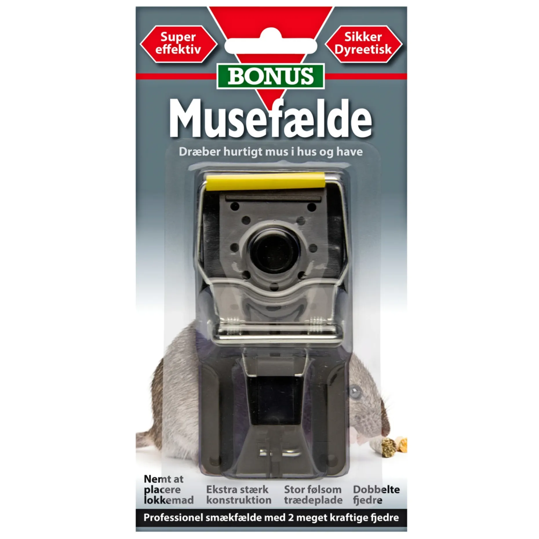 Smækfælde i plast til effektiv brug mod alle slags mus, ude og inde. Nem at aktivere og dyreetisk.
