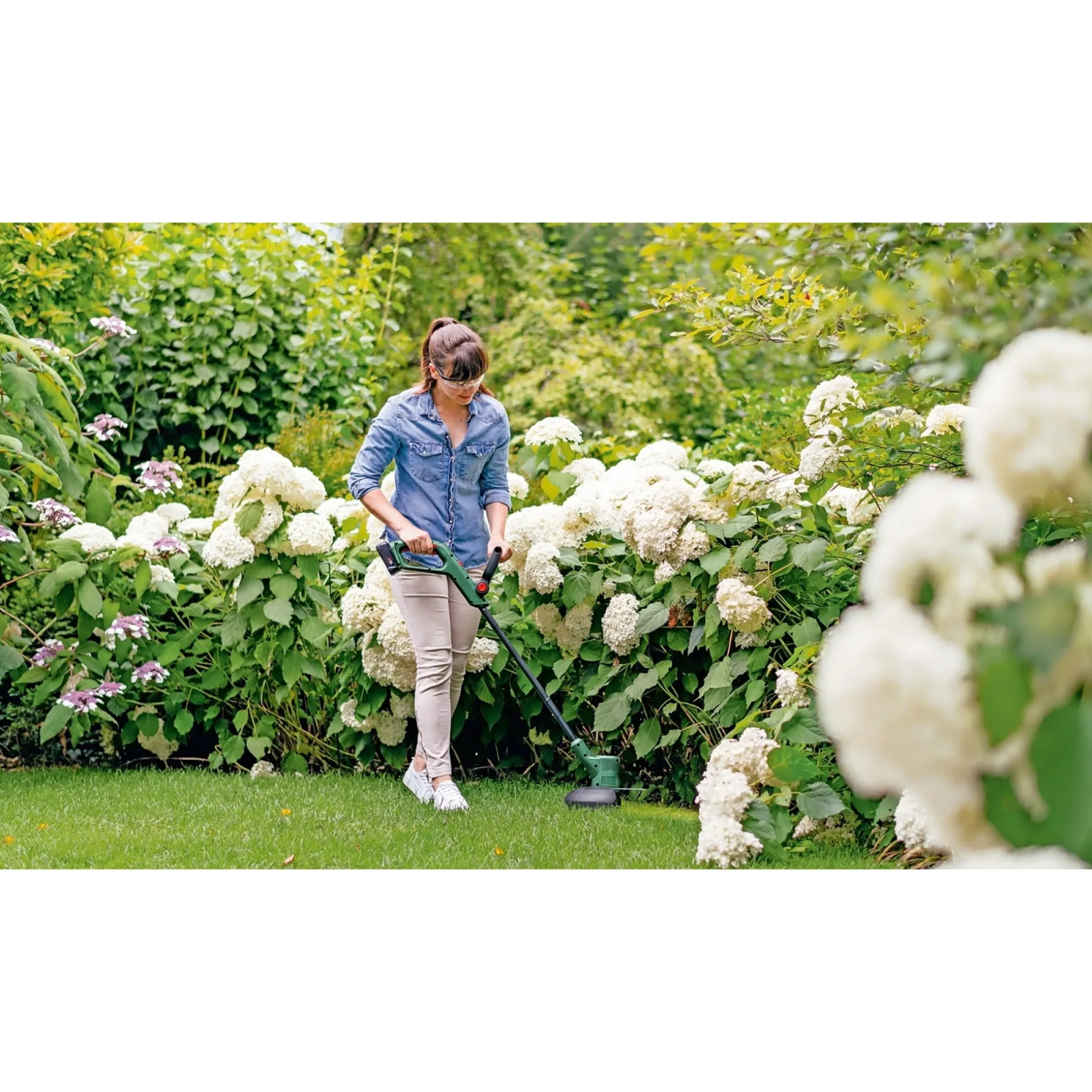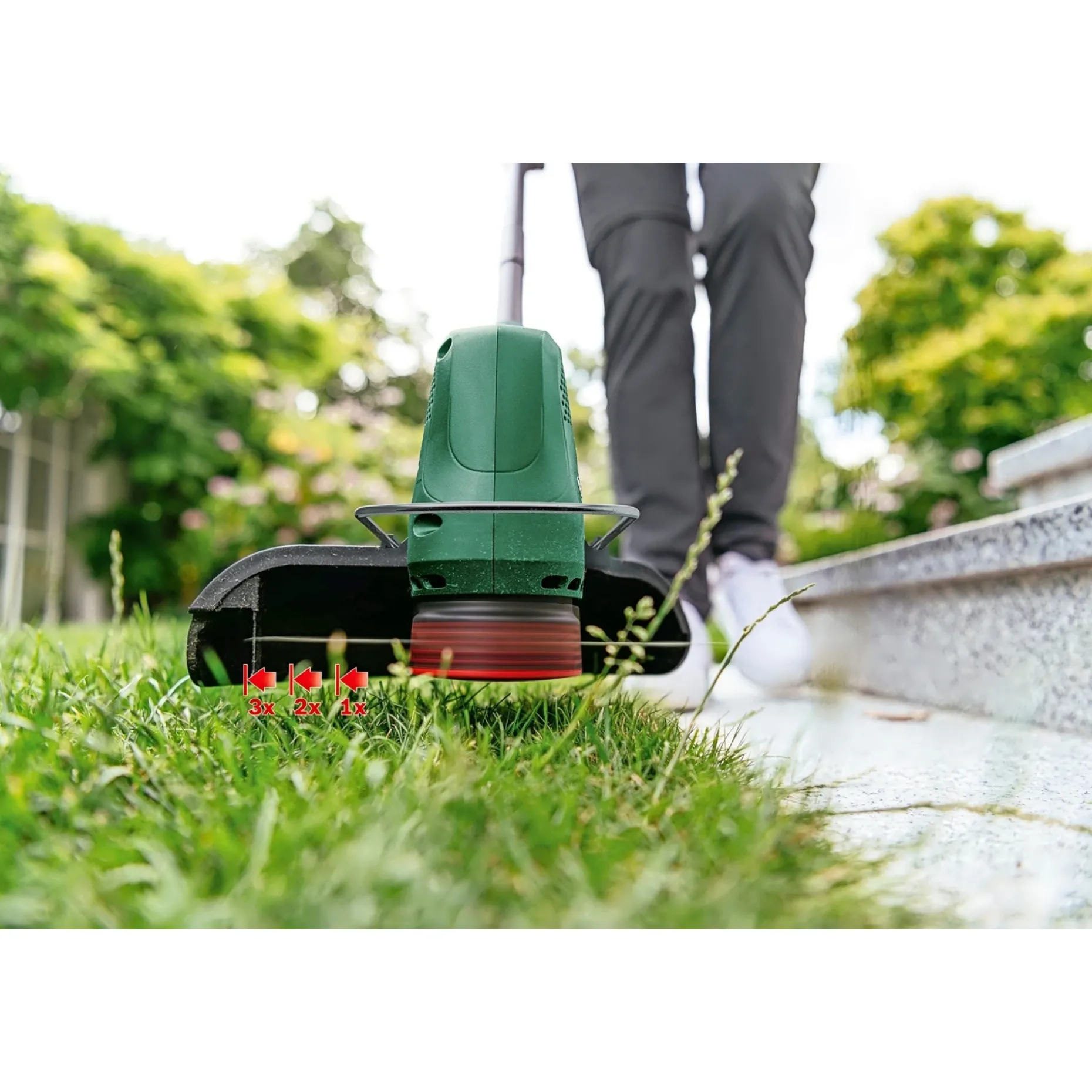 Det lette design og den gode afbalancering sikrer, at du kan trimme længere uden unødig træthed og opnå flotte trimmeresultater. Brug trimmeren til trimning af plænekanter og hurtig oprydning i haven. Kantklipningsfunktionen giver en ensartet finish ved græskanter.