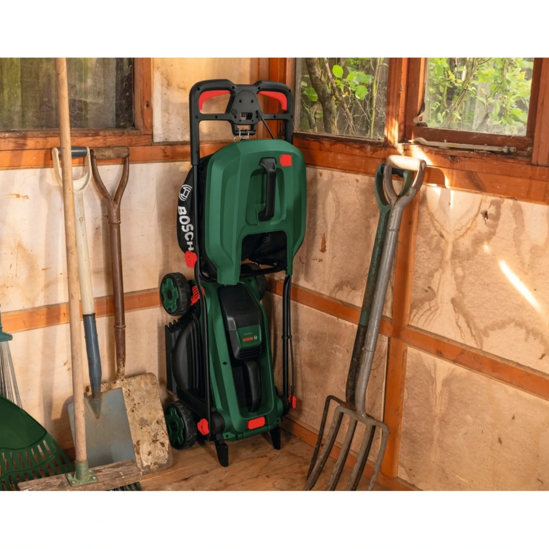BOSCH AKKU PLÆNEKLIPPER ROTAK er en kraftig 3-i-1 plæneklipper med 34 cm klinge, velegnet til små og mellemstore græsplæner. Den leveres inkl. 1×4,0 Ah batteri og lader og er designet til opsamling, bioklip og sideudkast.