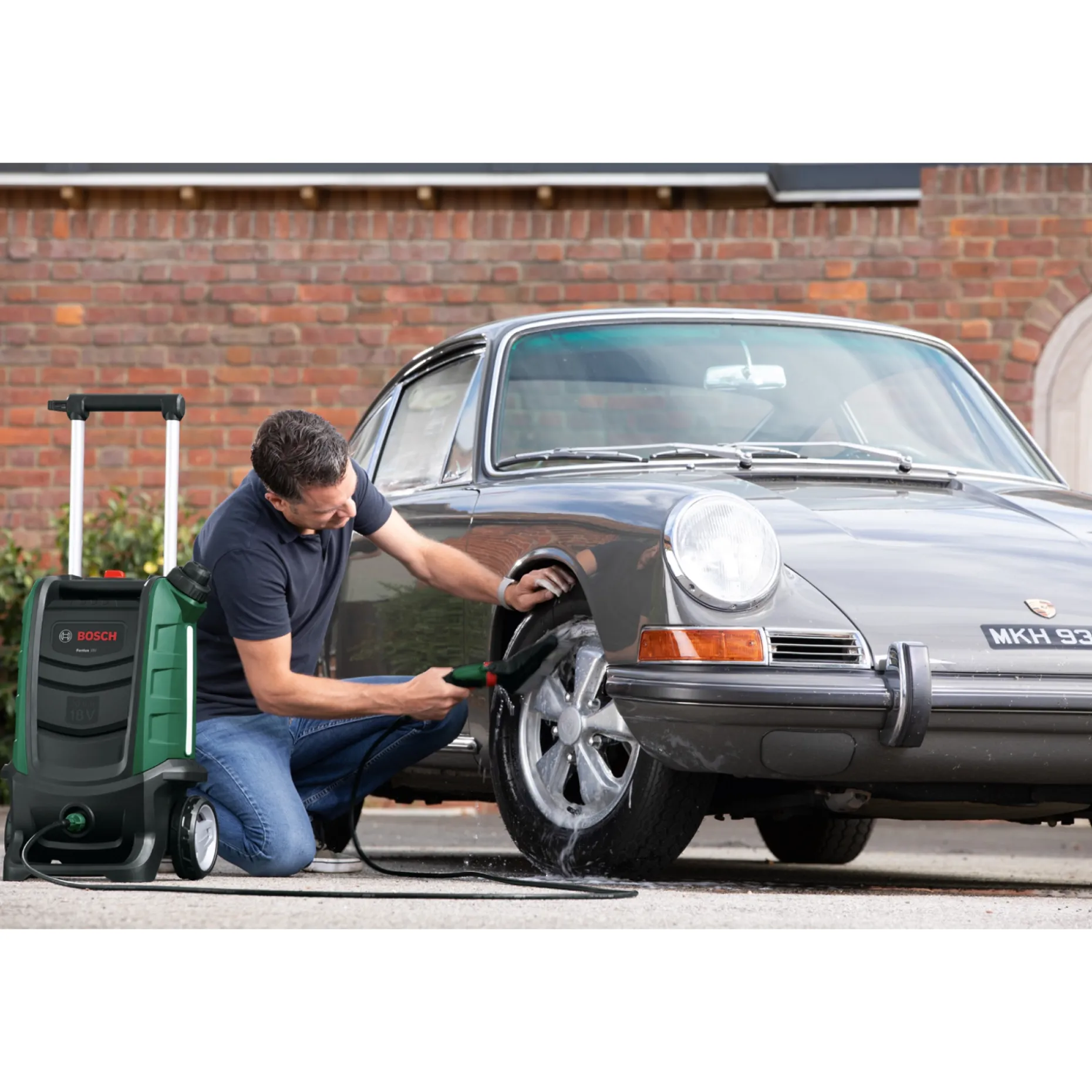 Den batteridrevne Fontus 18 V-udendørsrenser giver frihed til at rengøre biler, motorcykler, havemøbler og cykler overalt. Med en 15 liters vandbeholder eller mulighed for tilslutning til hovedvandforsyning sikrer den fleksibel brug på stedet.