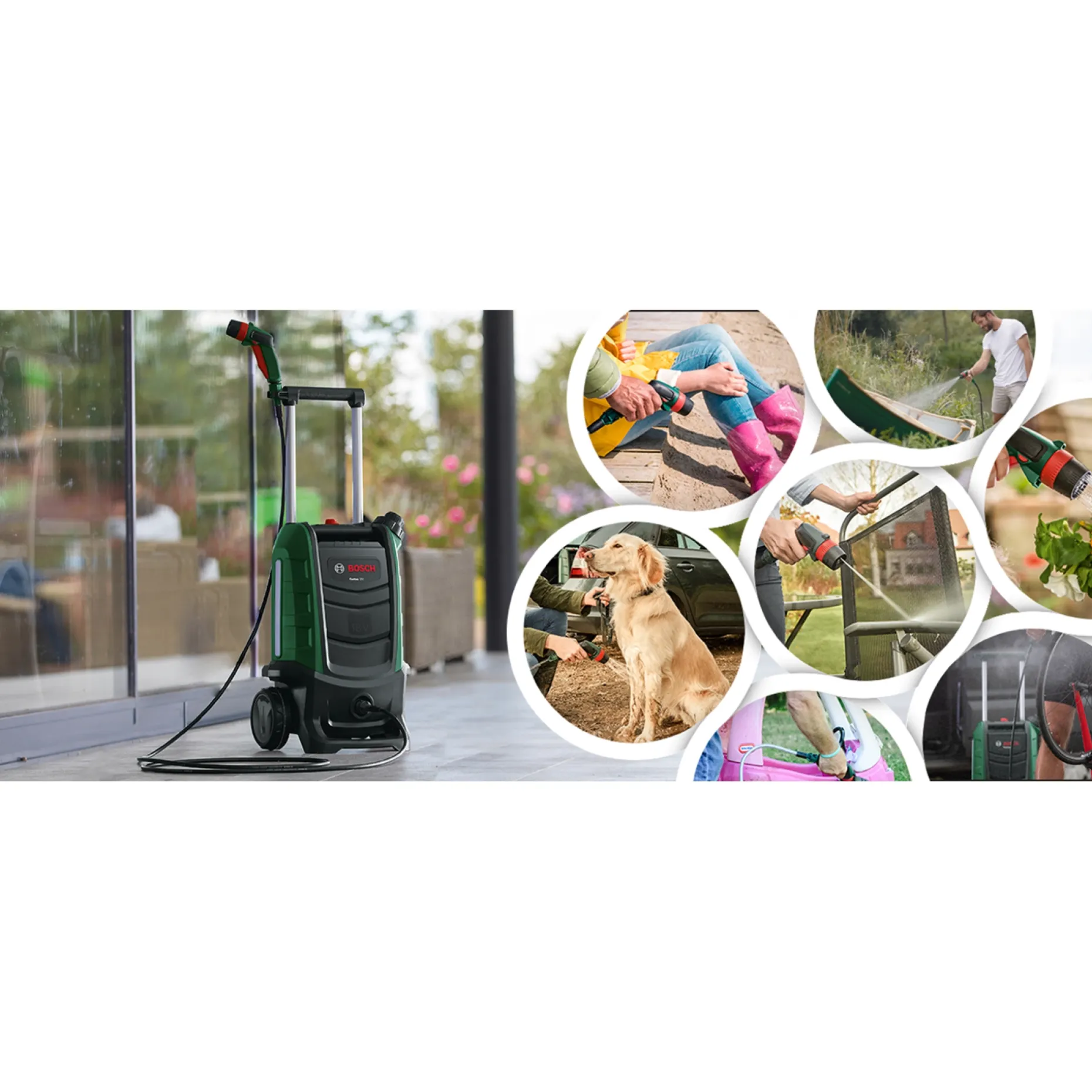 Opsætningen er hurtig, og den ledningsfrie konstruktion kombineret med stor manøvreevne gør det muligt at opnå hurtige resultater uden besvær. Punktstråle fjerner genstridigt smuds, 15°-viftestrålen giver præcision på mindre områder, 50°-viftestrålen egner sig til afbrusning af større flader, og brusestrålen passer til skånsom vask.