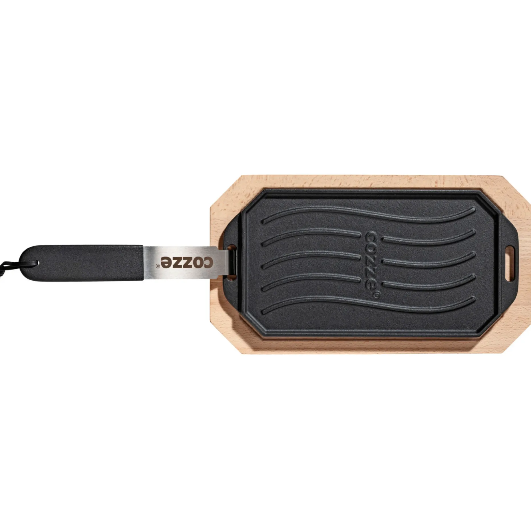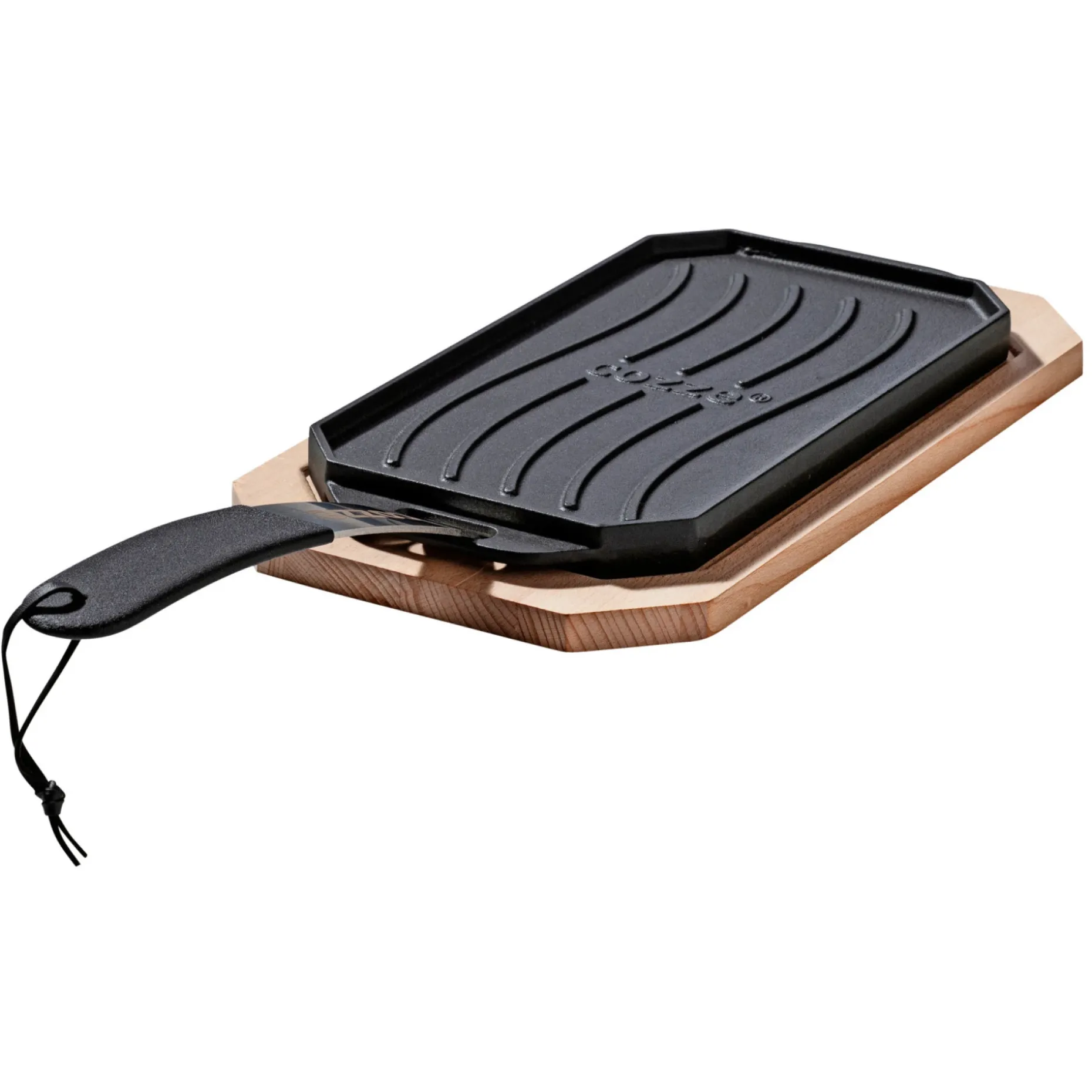 Cozze støbejernspande med træbakke
