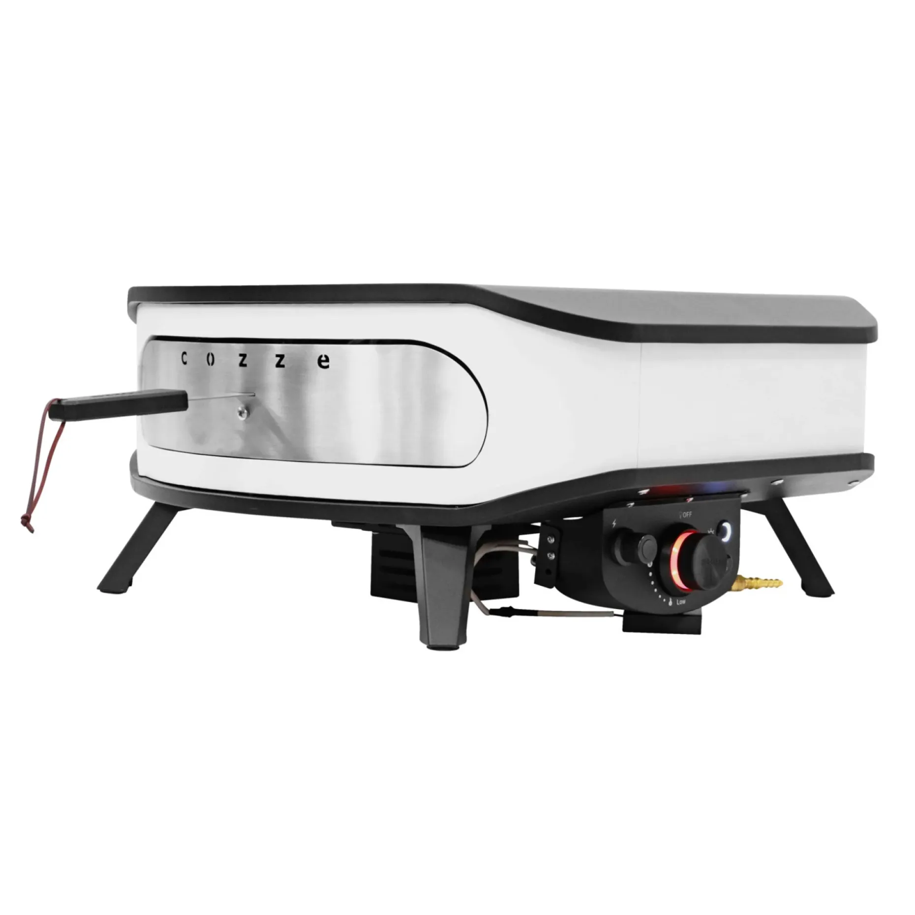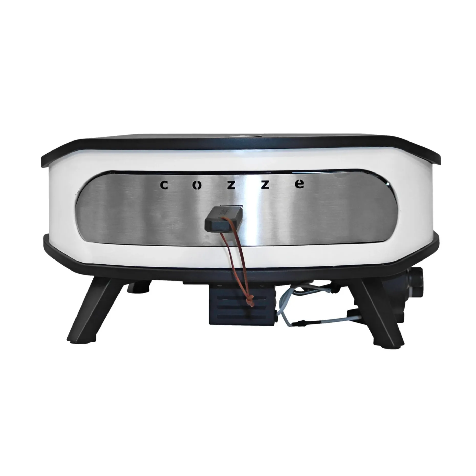Cozze 17″ pizzaovn er en gasdrevet udendørsovn med en roterbar pizzasten, der sikrer jævn afbagning og en sprød krumme. Den store stenplade og u-formede brænder giver plads til pizzaer op til Ø42,5 cm og gør det nemt at tilberede flere pizzaer til familie eller gæster. Ovnen har et indbygget termometer og en batteridrevet motor til rotation af stenen, hvilket forenkler håndteringen og øger kvaliteten af bagningen.