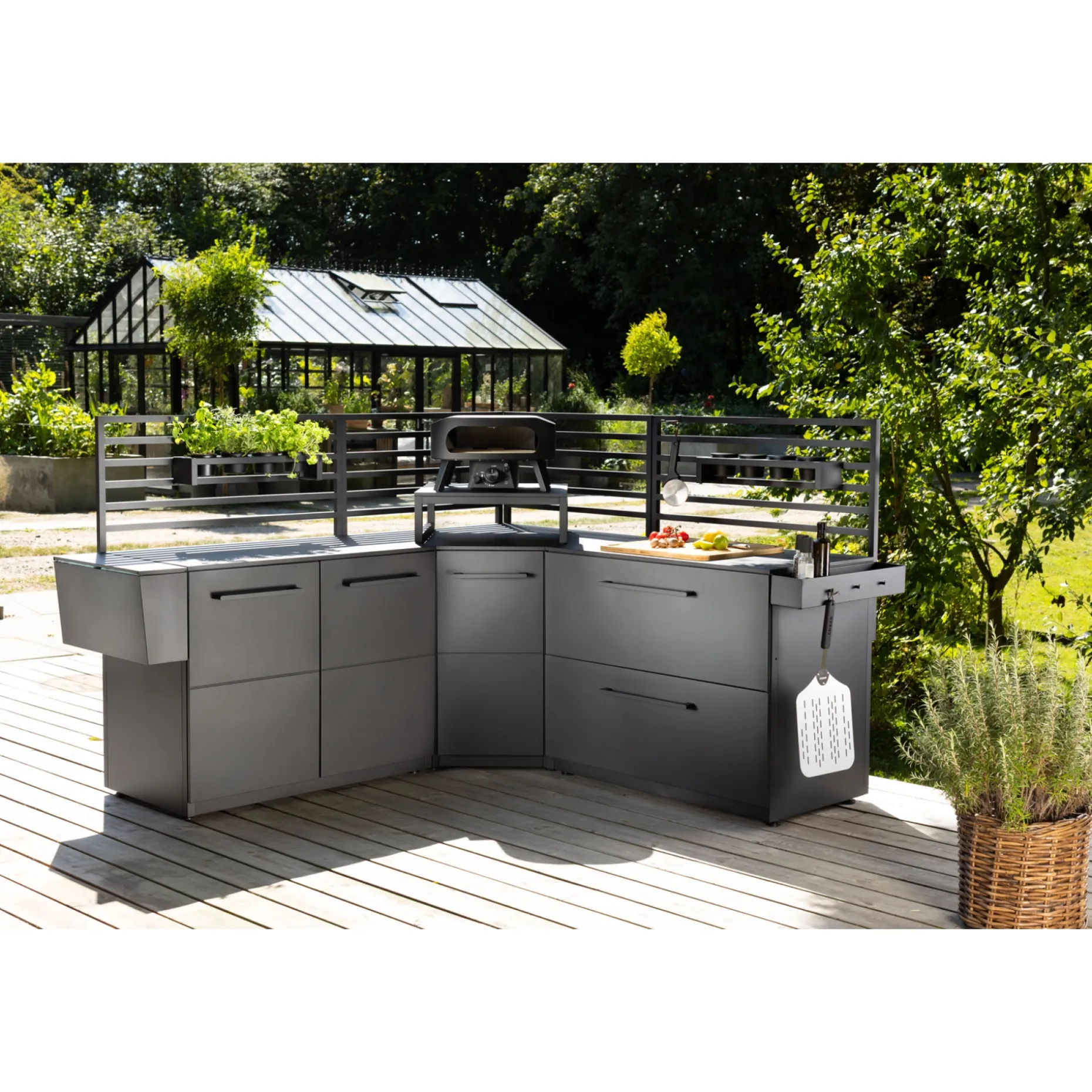 Maksimal bæreevne er 80 kg, så platformen kan bære de fleste fritstående pizzaovne. Det enkle og funktionelle design integreres nemt i eksisterende udekøkkener uden at fylde unødigt.