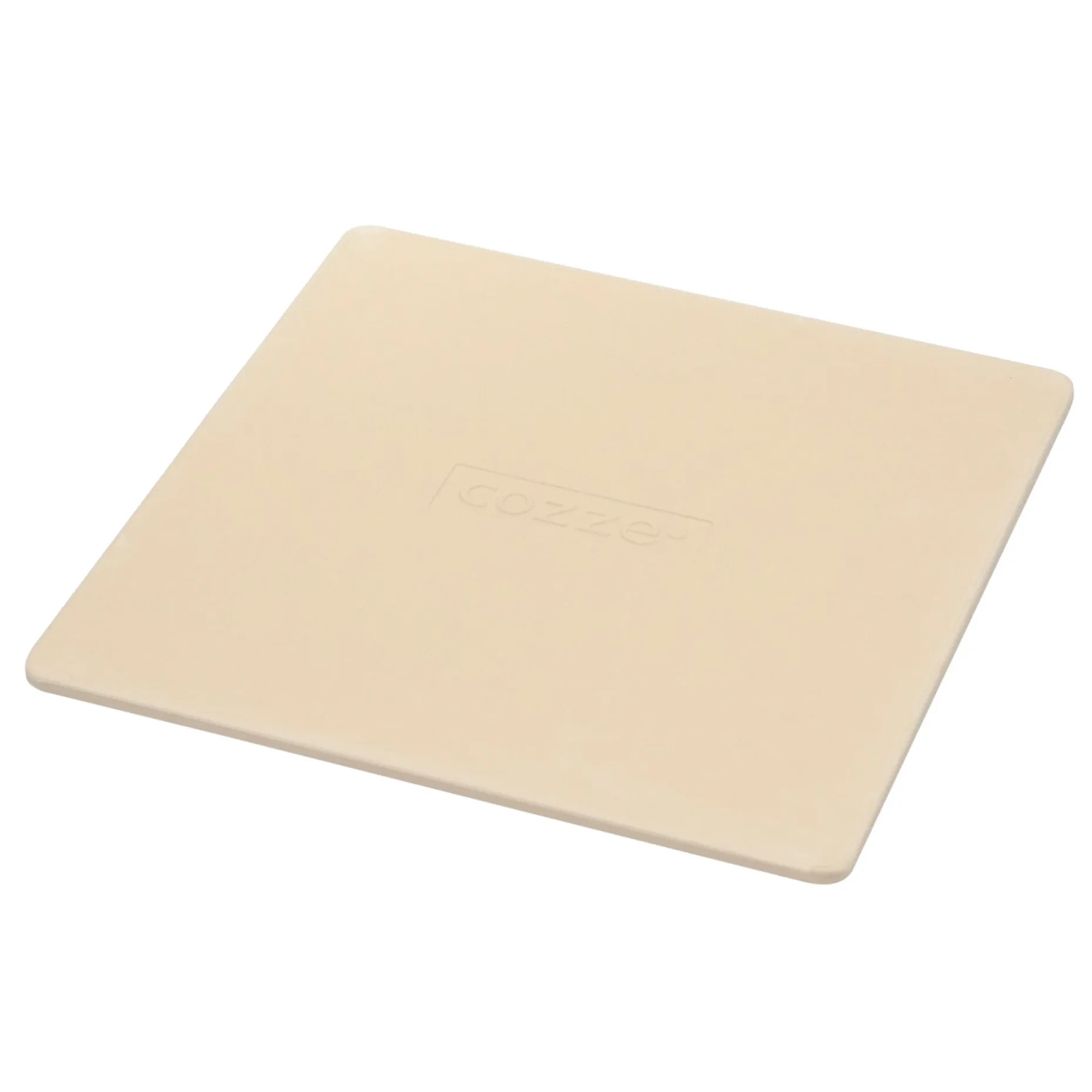 Pizzastenen måler 42,5×42,5 cm med en tykkelse på 1 cm og passer til Cozze pizzaovn 17″.