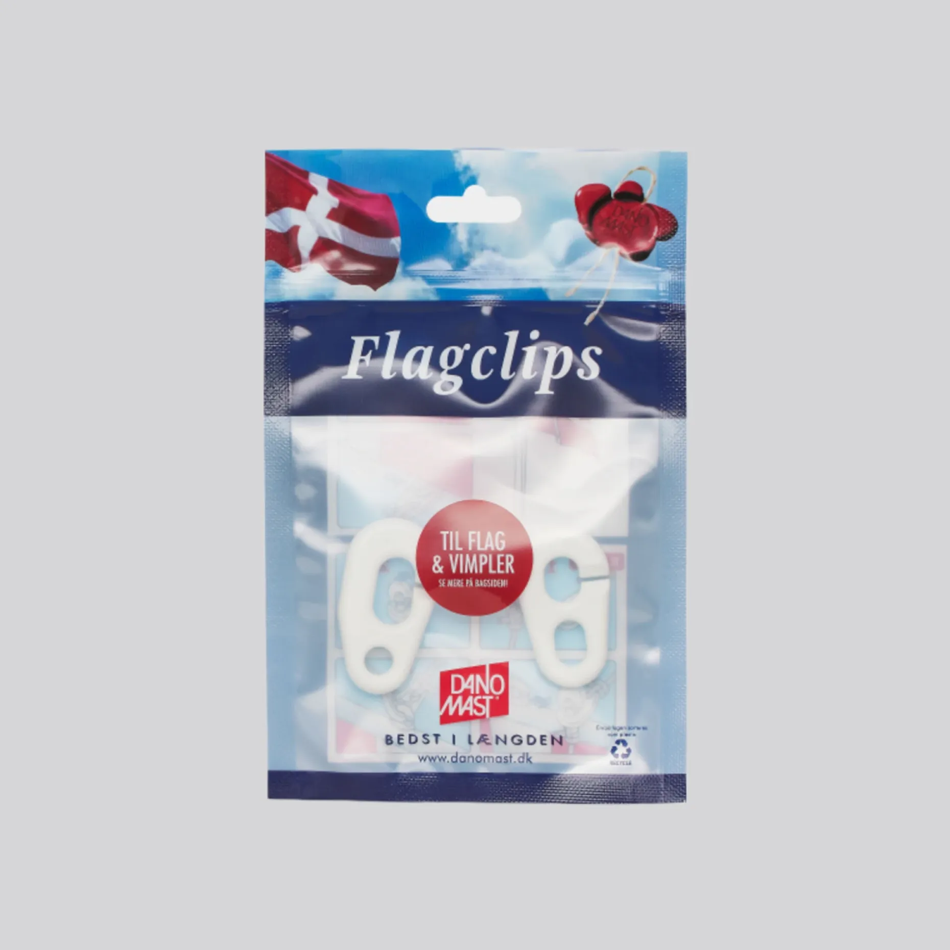 Dano Mast flagclips, sæt á 2 stk., 1 aflang og 1 kort i rytter.