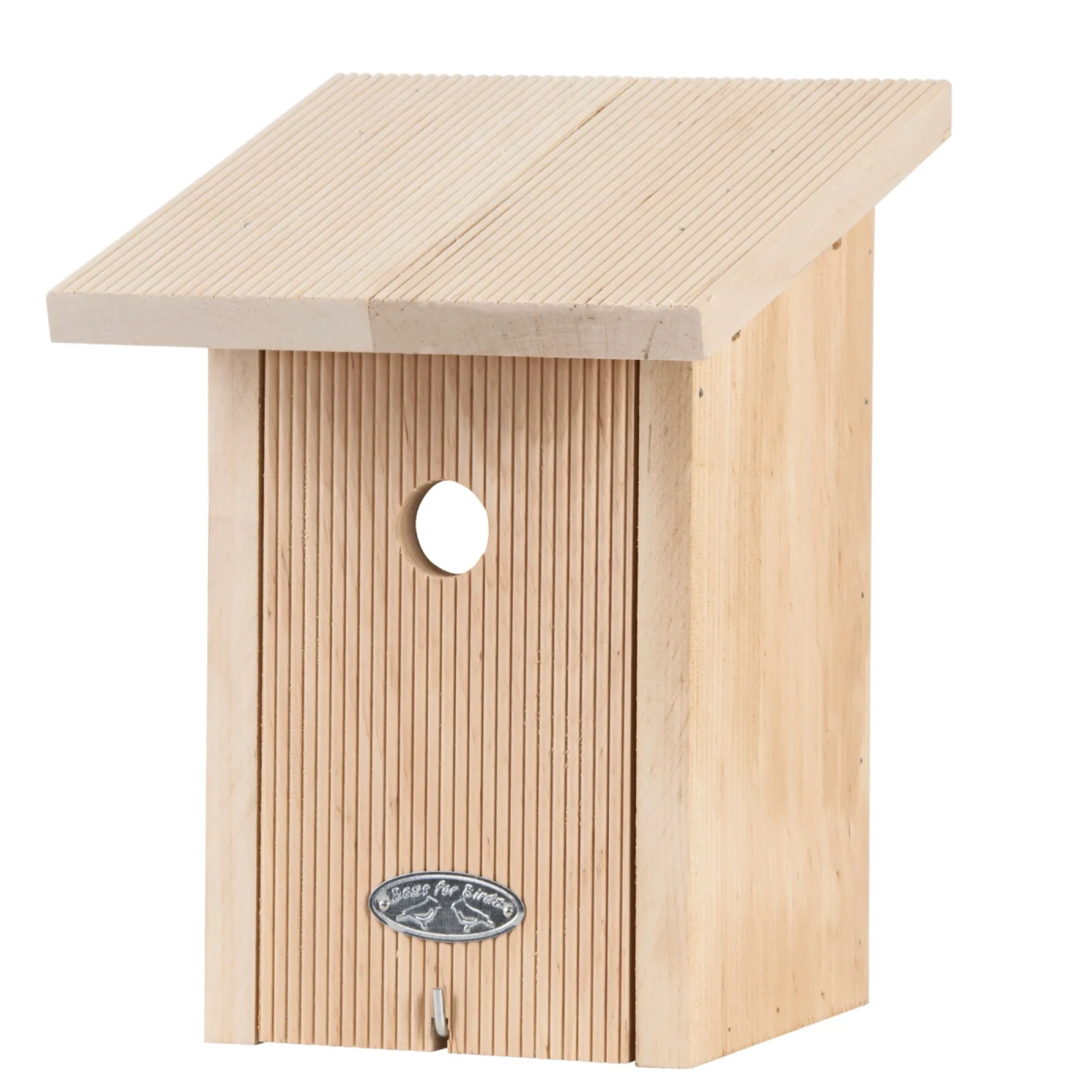 Med mål L18,5xB19,9xH26 cm er redekassen kompakt, men rummelig nok til redebygning og opfostring af unger uden at tage unødigt meget plads. Produktet leveres i gaveæske i natur, hvilket gør det til en let og præsentabel gave til fugleinteresserede eller som en enkel tilføjelse til haven.