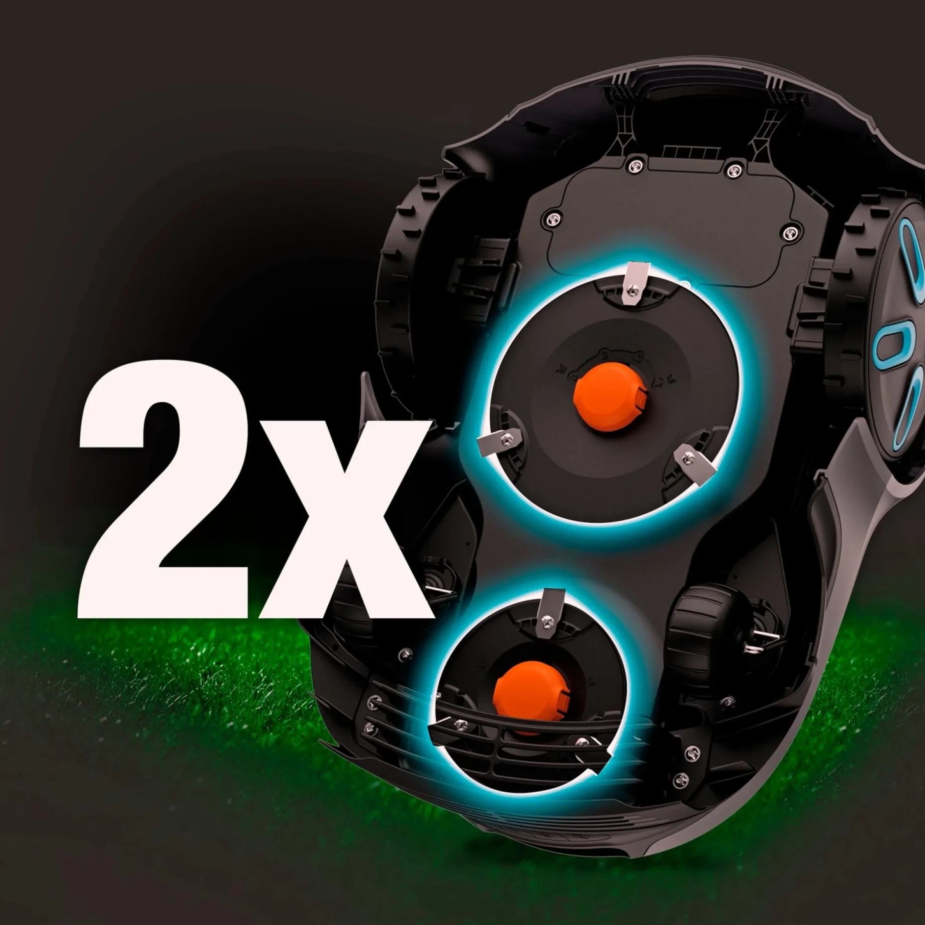 Modellen har en ekstra knivdisk, der muliggør klip-til-kant ned til 1 cm ved mur eller hegn. Udstyr som klip-til-kant og anti-kollisionsradar (tilbehør) gør robotten i stand til at tilpasse sig ændringer i haven, uanset om det regner eller solen skinner. Leveres med ladestation, 150 m kabel og 200 pløkker; gateway medfølger ikke.