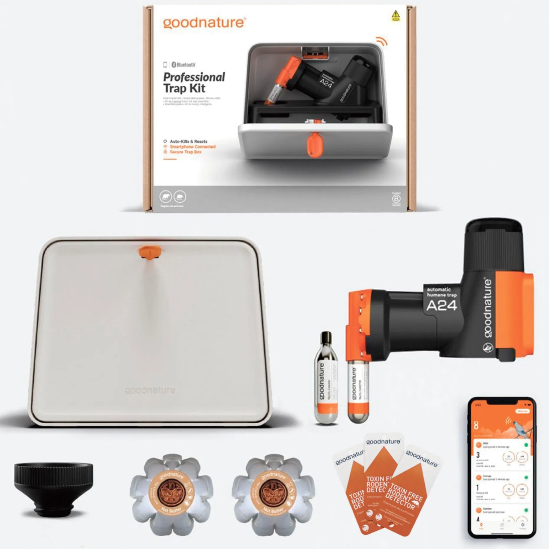 Den intelligente fælde fra Goodnature bekæmper hurtigt og smertefrit rotter og mus. Når fælden går af, falder skadedyret ned på jorden, og fælden genlader automatisk sig selv 24 gange. Det betyder, at du kan fange flere rotter eller mus uden at skulle genlade fælden manuelt. Når fælden er opsat udenfor, kan de døde skadedyr blive spist af andre dyr.