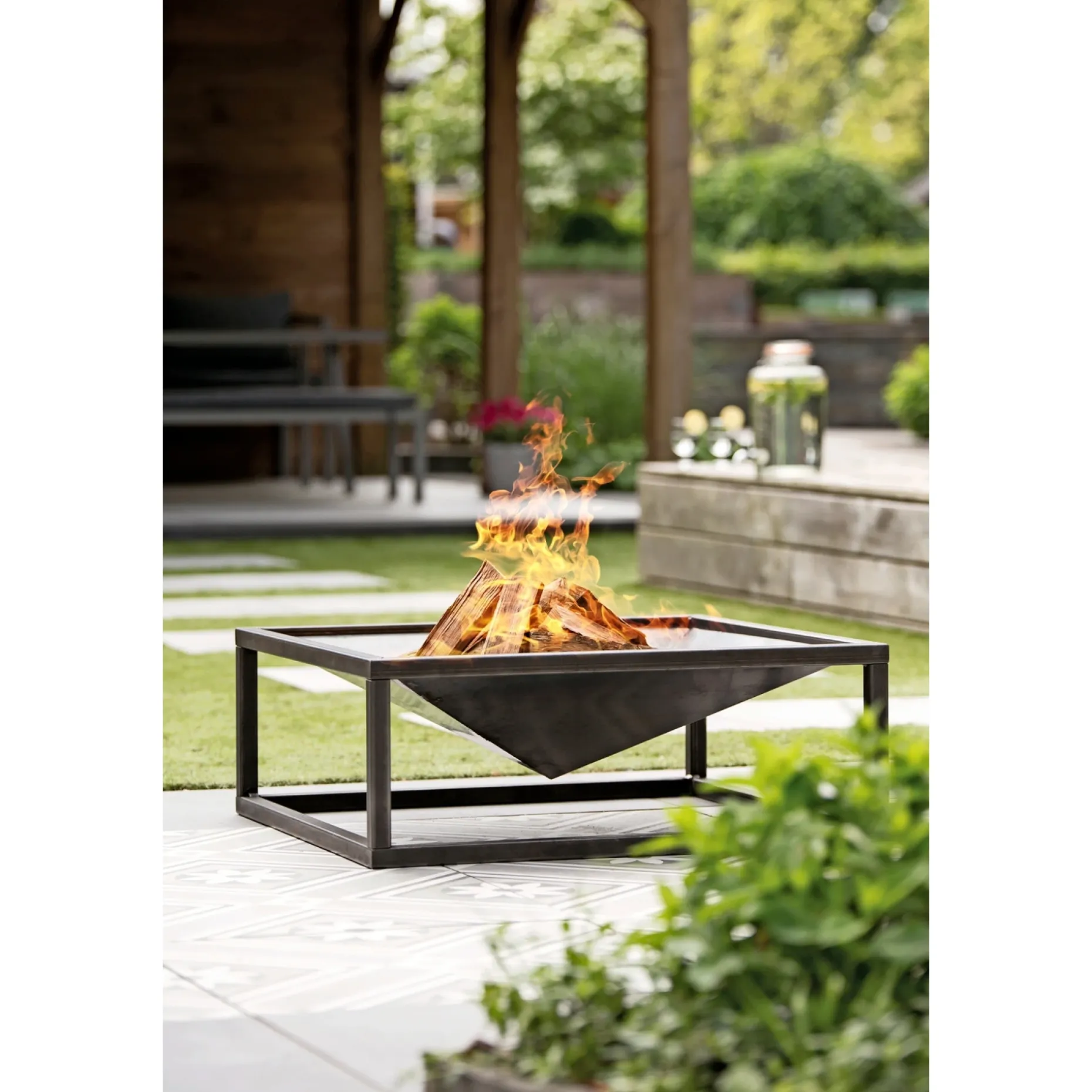 Bålstedet ALVA er 80×80 cm og lavet i 1,5 mm stål på stabil metalramme. Bålstedet står ubehandlet og vil over tid få en flot patina af rust. Højde 31 cm.