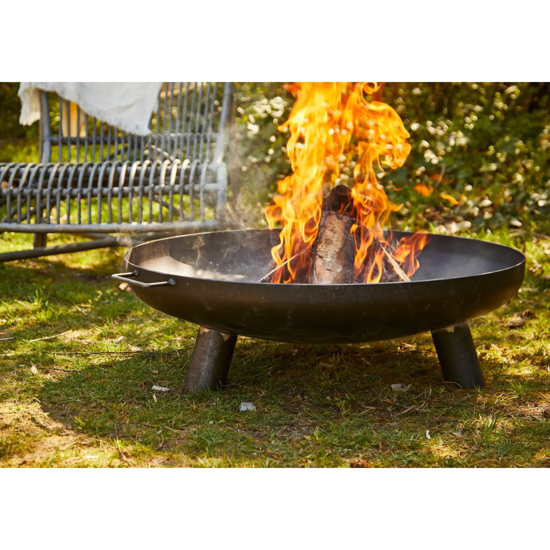 Med en arbejdsdiameter på Ø80 cm giver fadet god plads til ildsted og varme for flere personer. Det er sort-lakeret for et stilrent udseende ved levering og har et praktisk håndtag til bekvem håndtering.