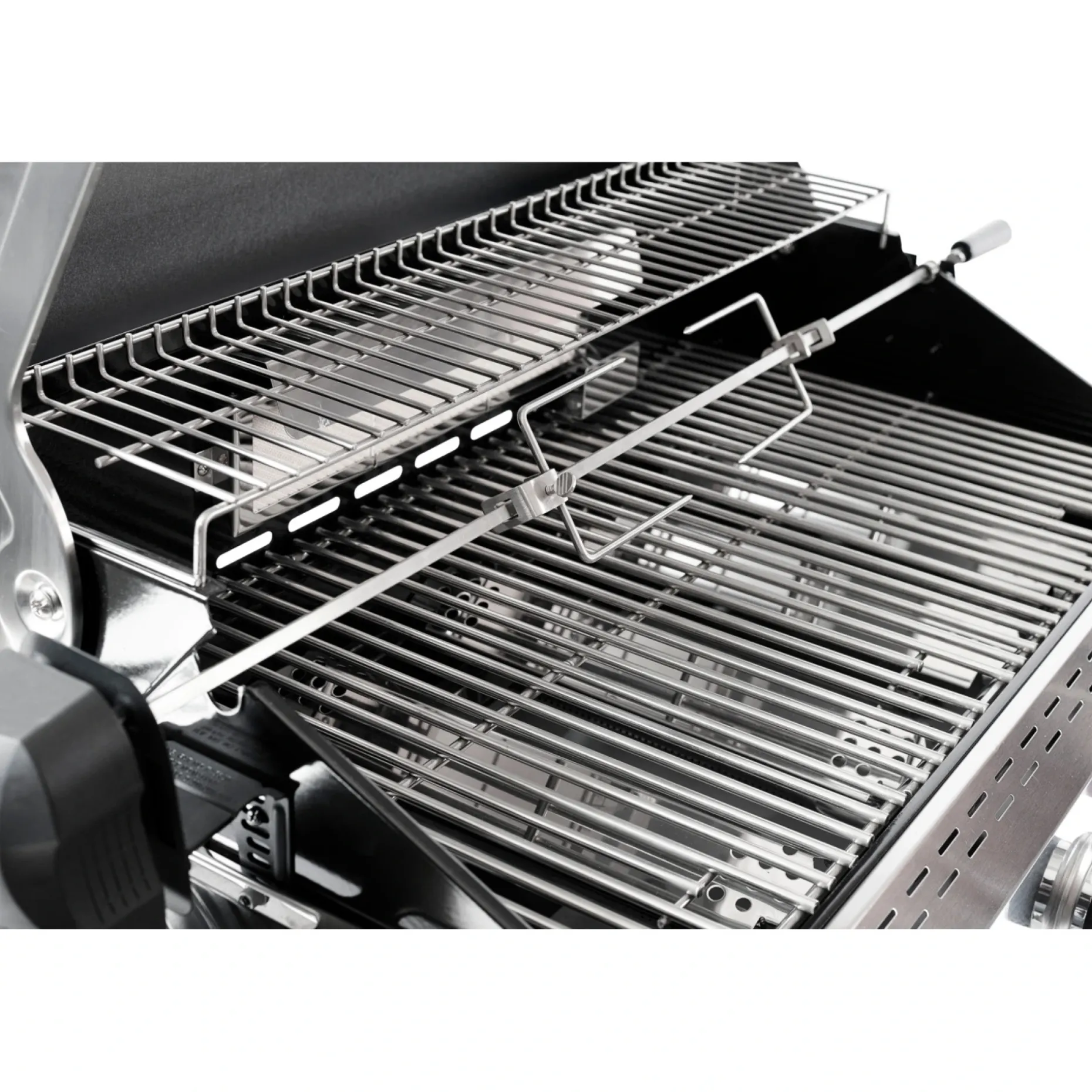 Dette rotisseriet er fremstillet i rustfrit stål og er udstyret med en kraftig 6 W motor. Rotisseriet kan anvendes til at grille kyllinger, stege, rotisserikurve osv. Hvis du har en større grill, anbefaler vi, at du køber et ekstra sæt gafler, så du bedre kan udnytte dens kapacitet.