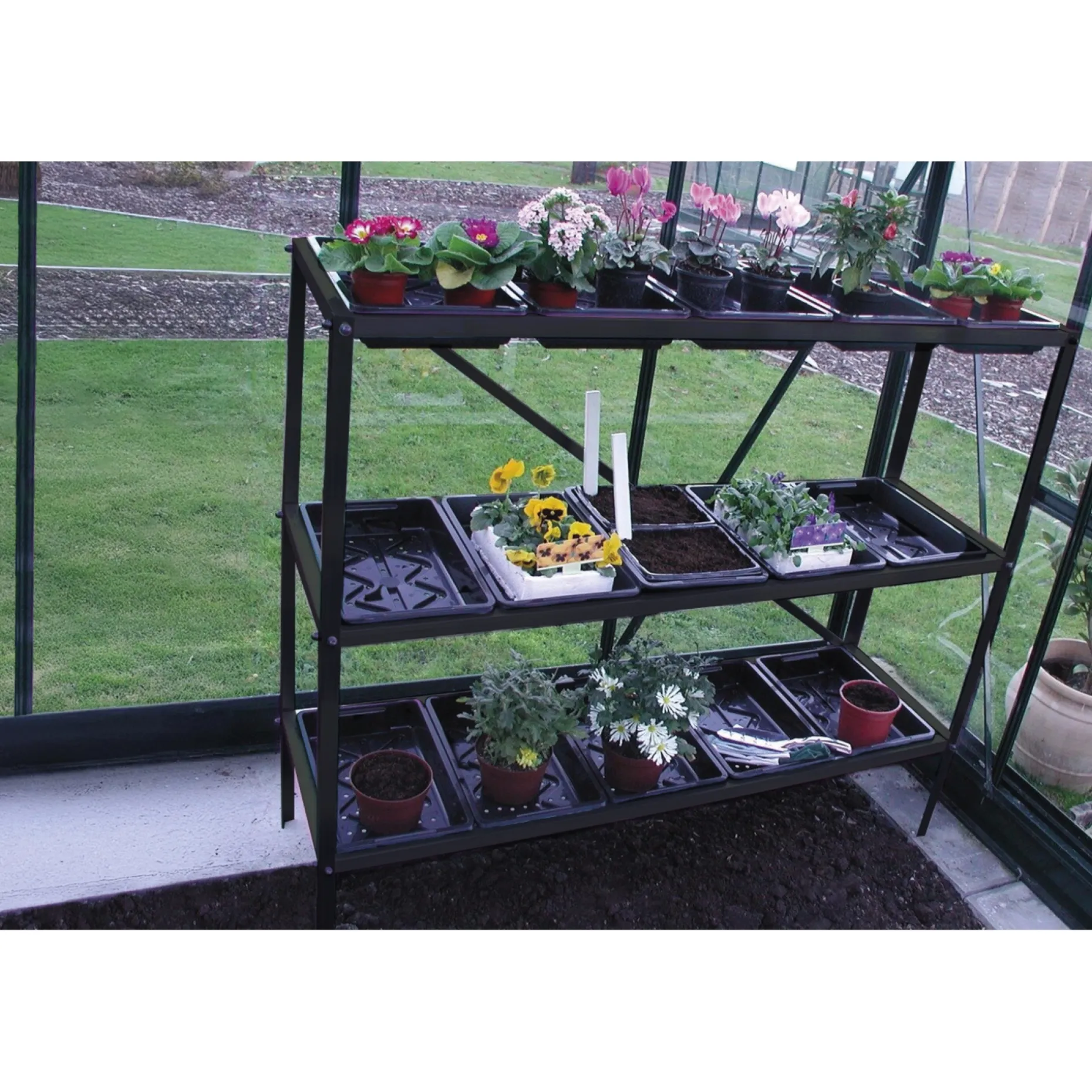 Halls frøbakkeramme i sort tilbyder tre afsætningsniveauer, så du kan placere flere planter pr. flade og nemt sortere efter sorter eller vækststadier. Det giver overblik og gør opformering planbar og let at passe.