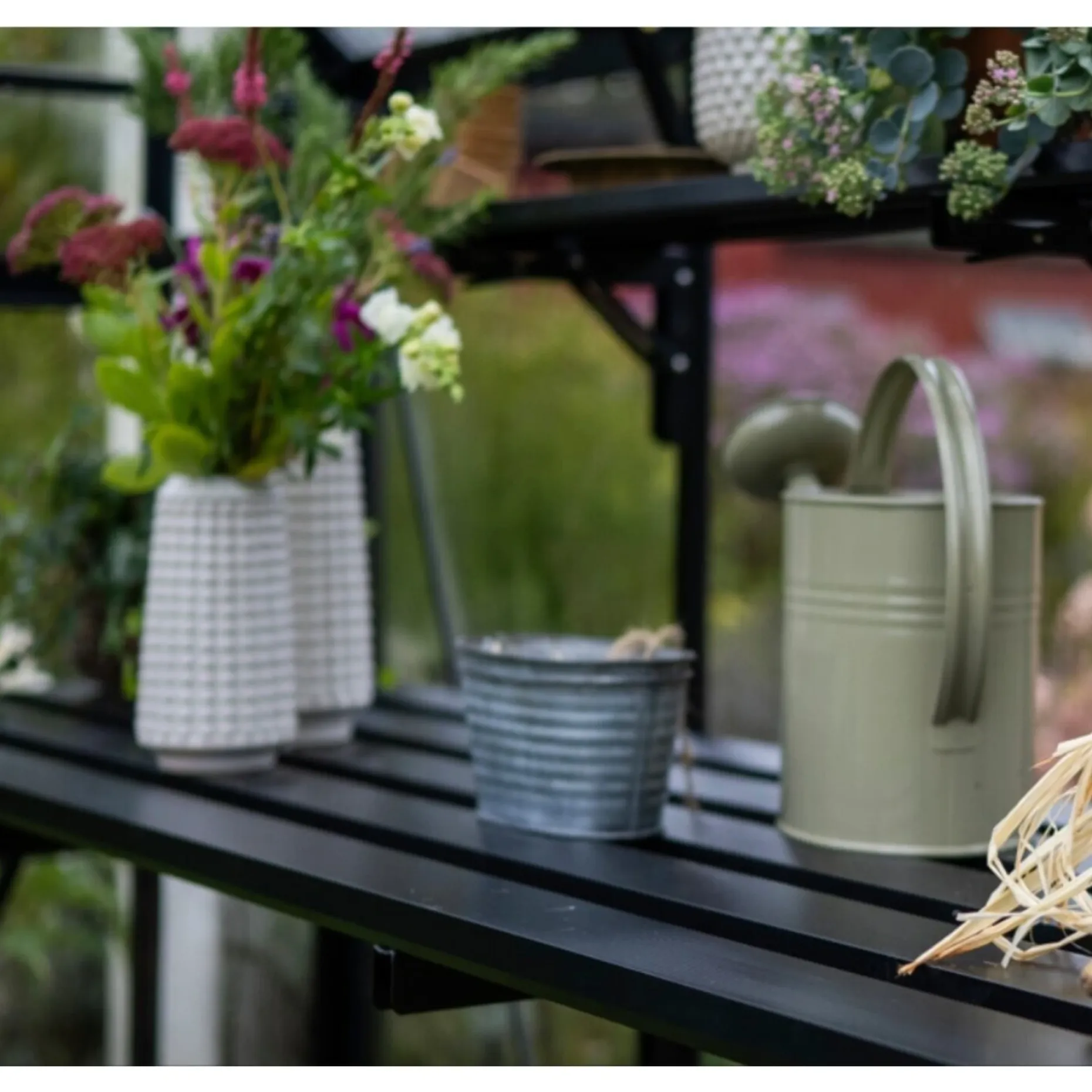 Dermed får du en stabil hylde til småplanter, potter, bakker eller havetilbehør.