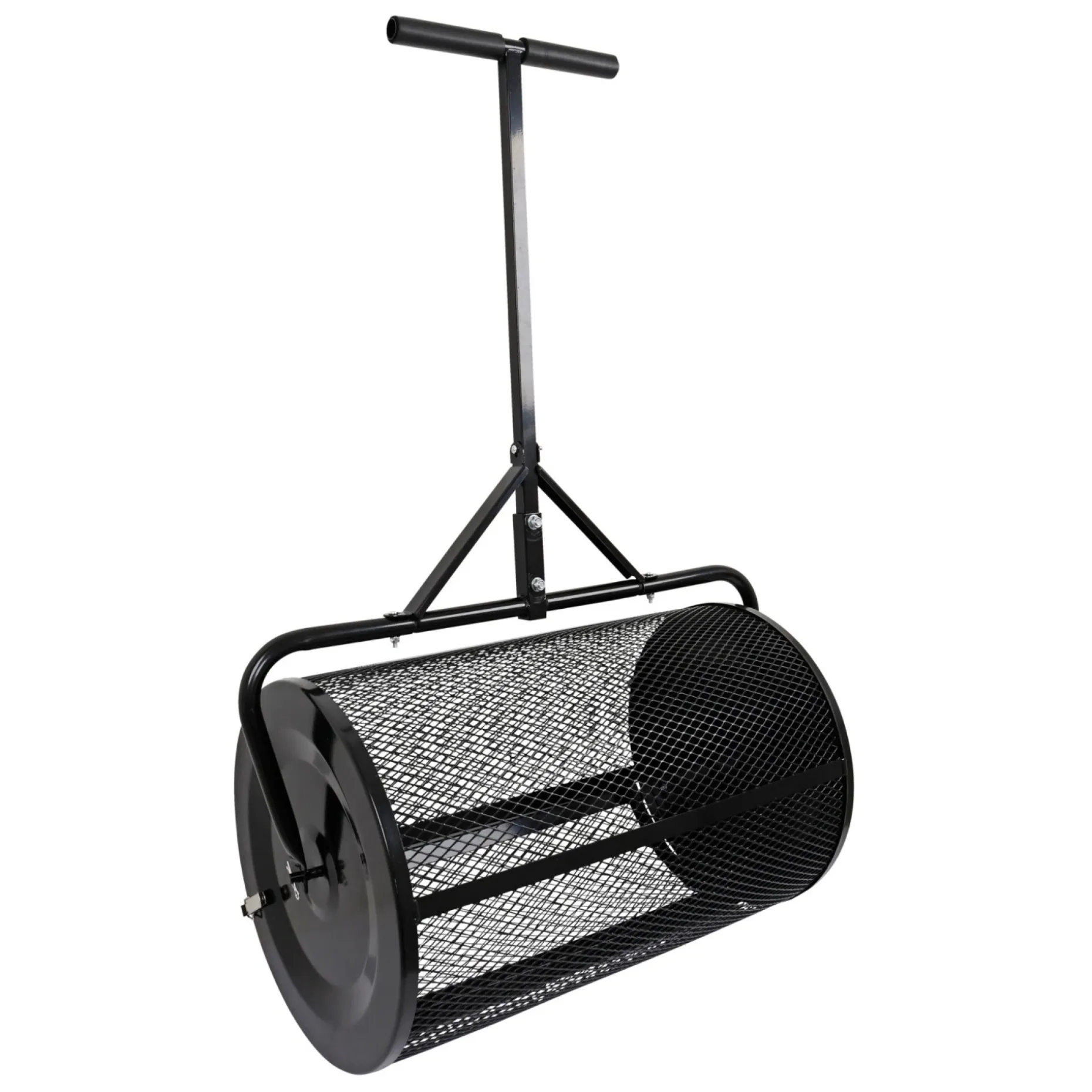 Metalnetkurven og den kraftige konstruktion giver tryg håndtering ved fyldning og arbejde. Skubbemodellen kræver ingen motorkraft og giver præcis kontrol over fordelingen, så du kan tilpasse tempoet til materialet og området.