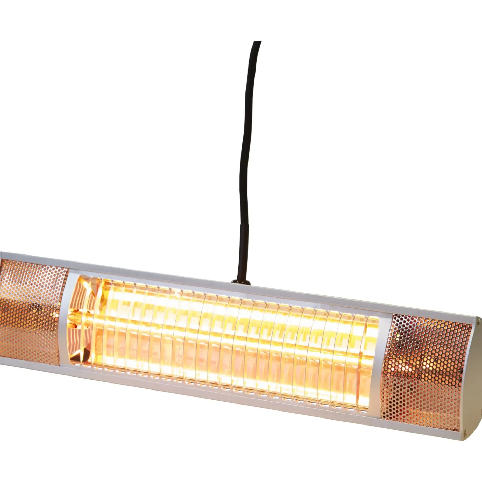 Væghængt infrarød kortbølge terrasevarmer i smart design, der er ideel til montering under markiser og tagudhæng. 92 % af energien konverteres til varme og giver rigeligt varme til de personer, der sidder inden for en afstand af 3 meter fra varmeren.