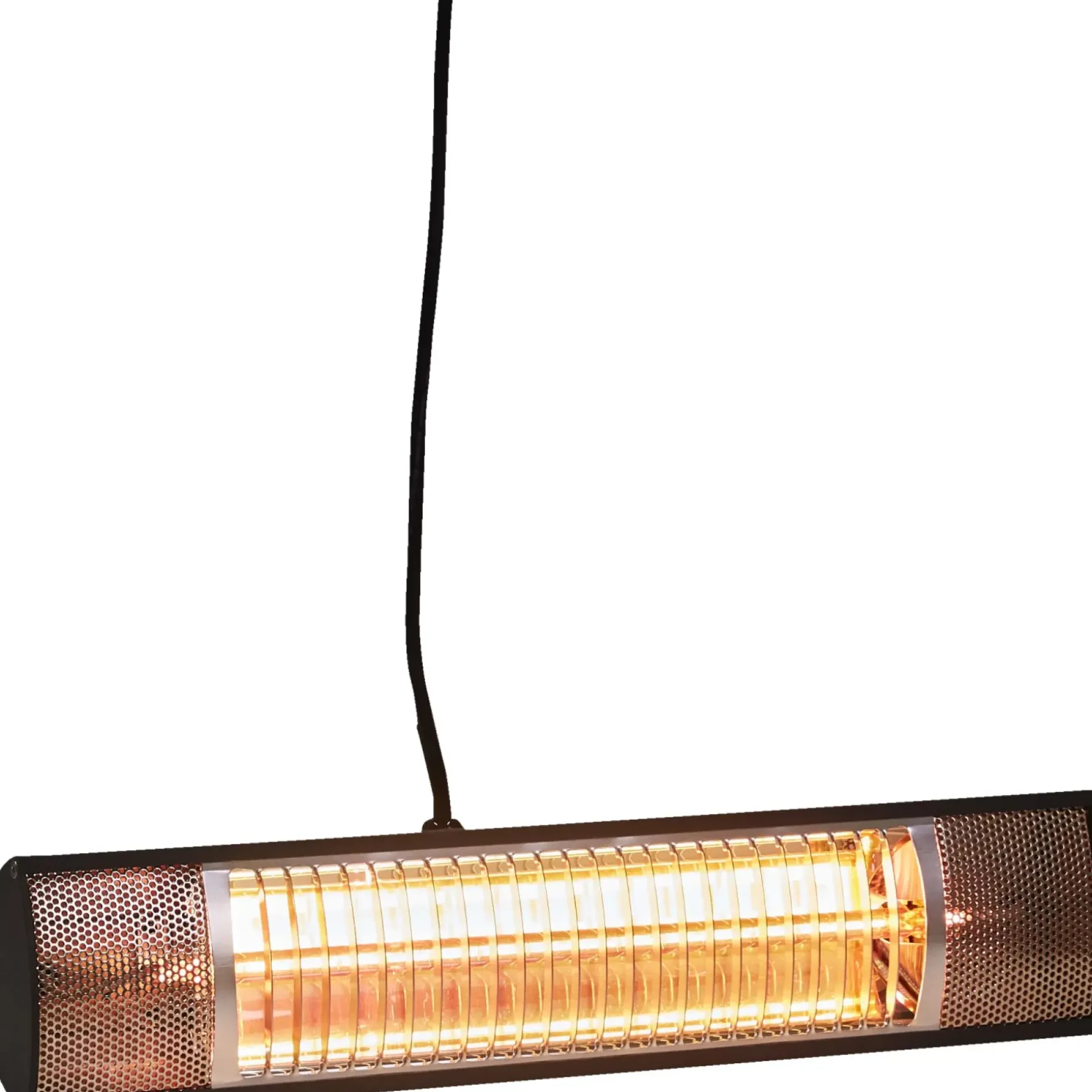 Væghængt HORTUS infrarød kortbølge terrassevarmer i smart og slankt design – ideel til montering under markiser og tagudhæng. 92% af energien konverteres til varme og giver rigeligt varme til de personer, der sidder indenfor en afstand af 3 meter fra varmeren. 1500W infrarød ultra low glare halogenrør med en levetid på minimum 7000 timer.