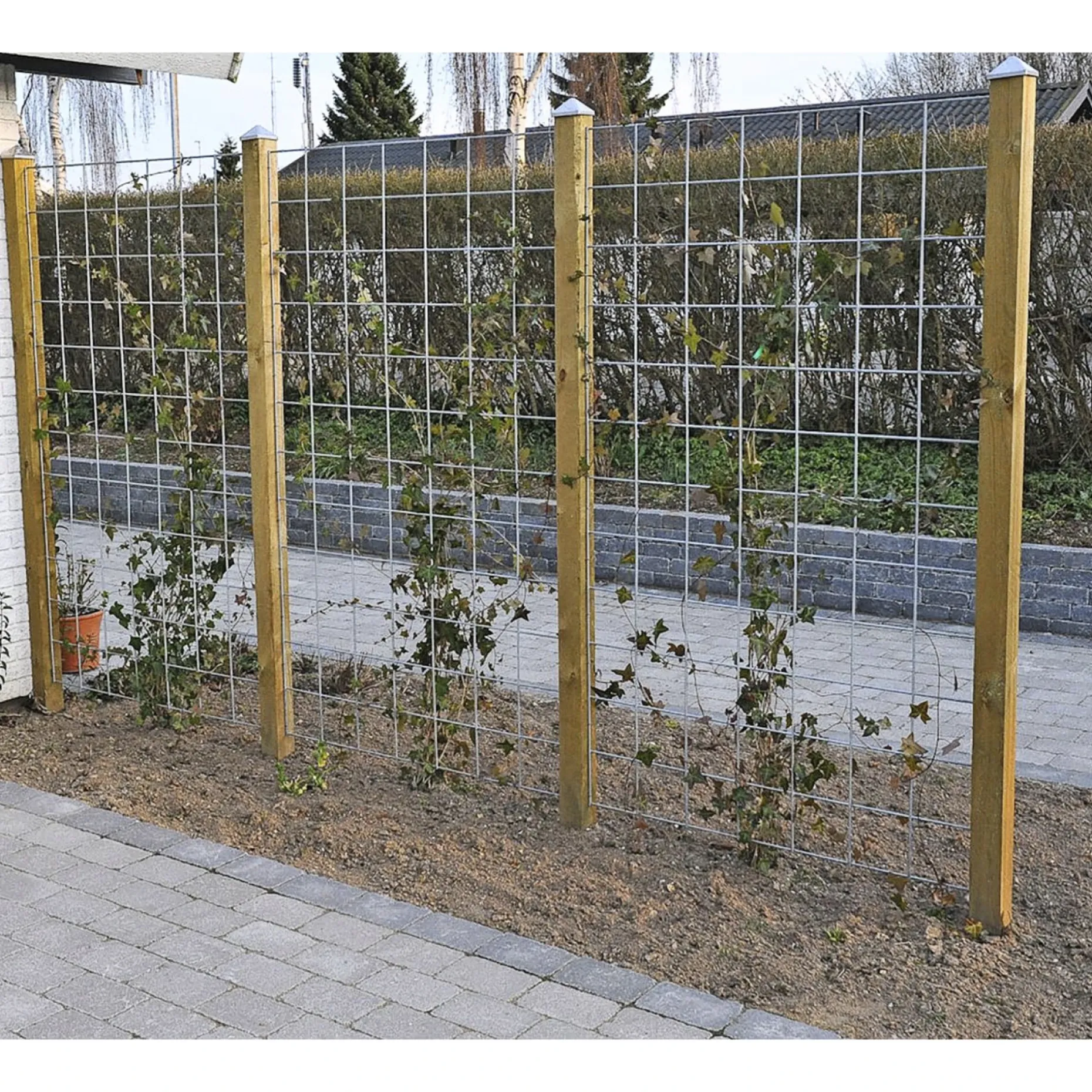 Dette rionet er en god løsning til at lave et hegn med espalier, hvor planter kan klatre op og med tiden give et velduftende, naturligt og smukt hegn i haven. Hortus rionet kan anvendes fritstående mellem 2 stolper eller til at bryde et langt massiv profilhegn og skabe luft.Hegnet er fremstillet i 5 mm varmgalvaniseret tråd. Afstanden mellem de lodrette og vandrette tråde er 10 cm og nettet har lukket ramme. Der medfølger beslag og skruer til montering.
