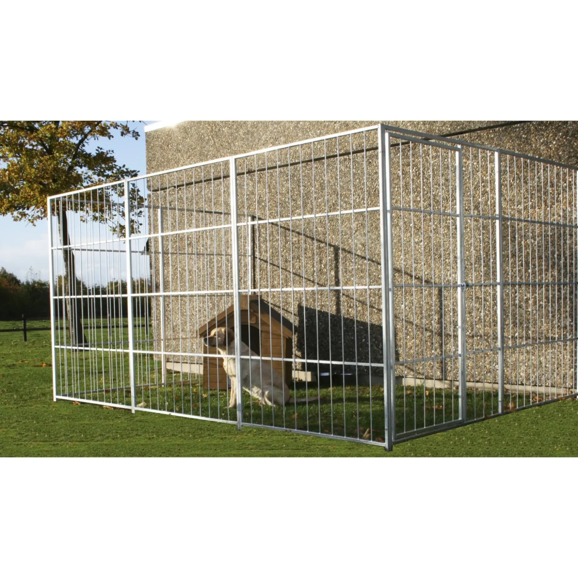 Hundegårdselementerne er fremstillet i moduler med varmegalvaniseret overflade. Leveres komplet med rustfrie stålbolte til samlingerne. Let at montere enten mod mur eller flere seperate sammenbyggede gårde.
