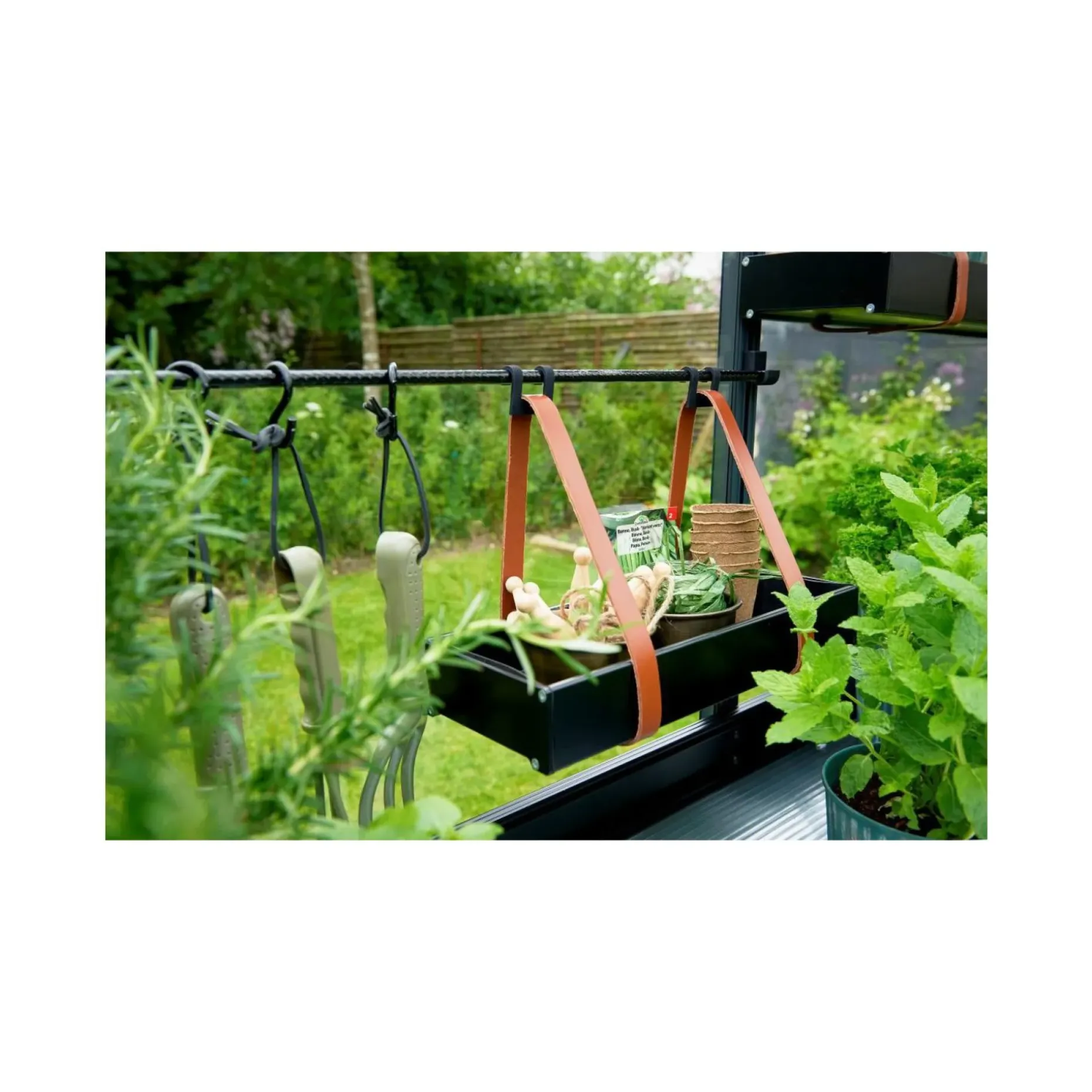 JULIANA PLANTEHYLDE PASSER TIL ALLE JULIANA DRIVHUSE. MED ET ELEGANT LÆDEROPHÆNG, KAN HYLDEN PLACERES OVERALT OG TAGES MED IND PÅ SPISEBORDET.