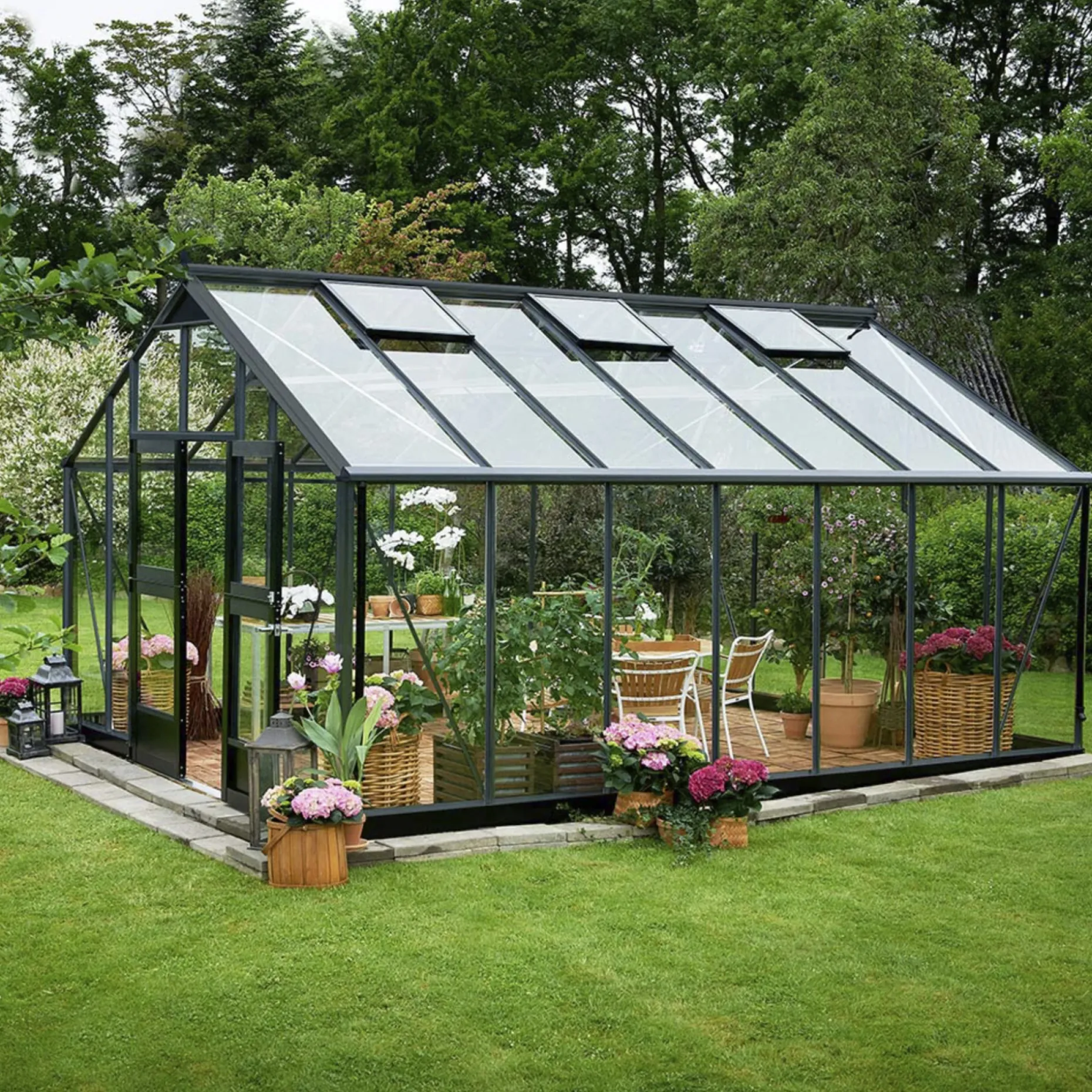 Drivhuset kan også benyttes som udestue, hvor du kan sætte et sæt havemøbler, og dermed hygge dig i haven, og samtidig nyde naturen. Med det 18,8 m2 store dyrkningsareal, er der masser af plads til at udfolde dine kreative evner, og udnytte pladsen, efter lige præcis dine ønsker og behov. Du kan f.eks også bruge drivhuset, som et blomsterværksted og binderi, og kreere de smukkeste buketter.