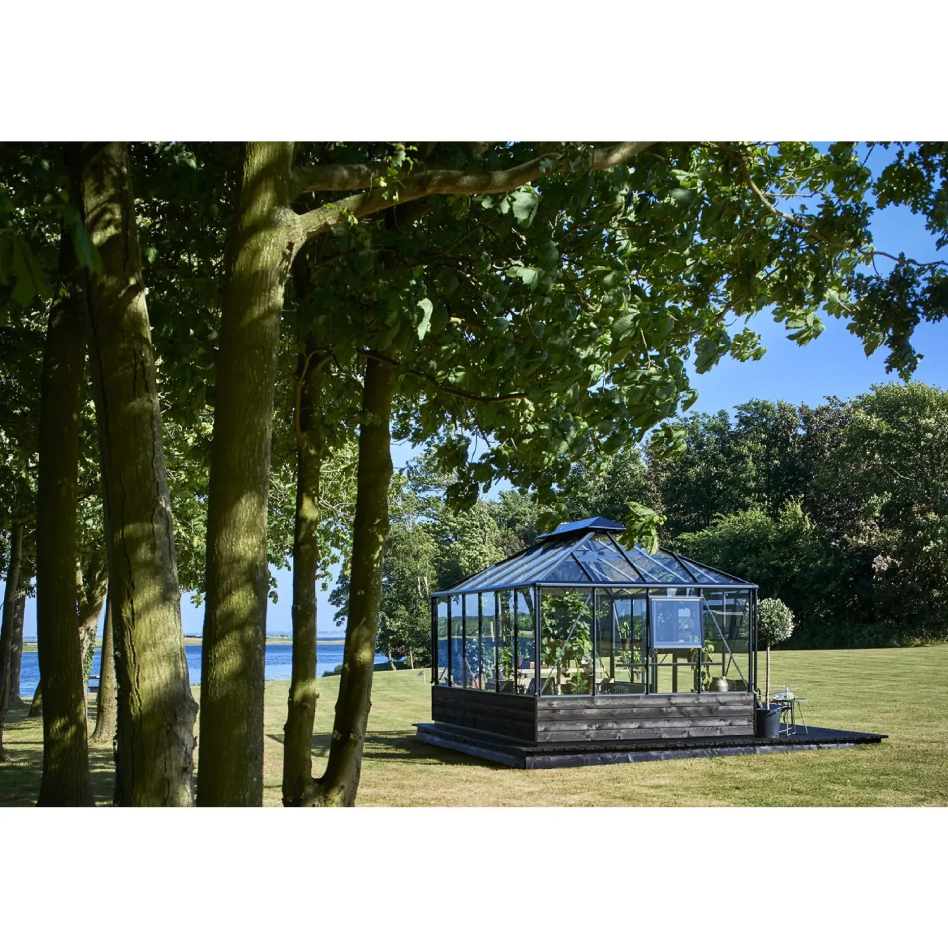 Dette drivhus passer til en rigtig drivhus-entusiast. Der er plads til hele familiens planteprojekter, som dyrkning af krydderurter, frugt og grønt. Samtidig er der også plads til at have bord og stole, hvis dette ønskes.