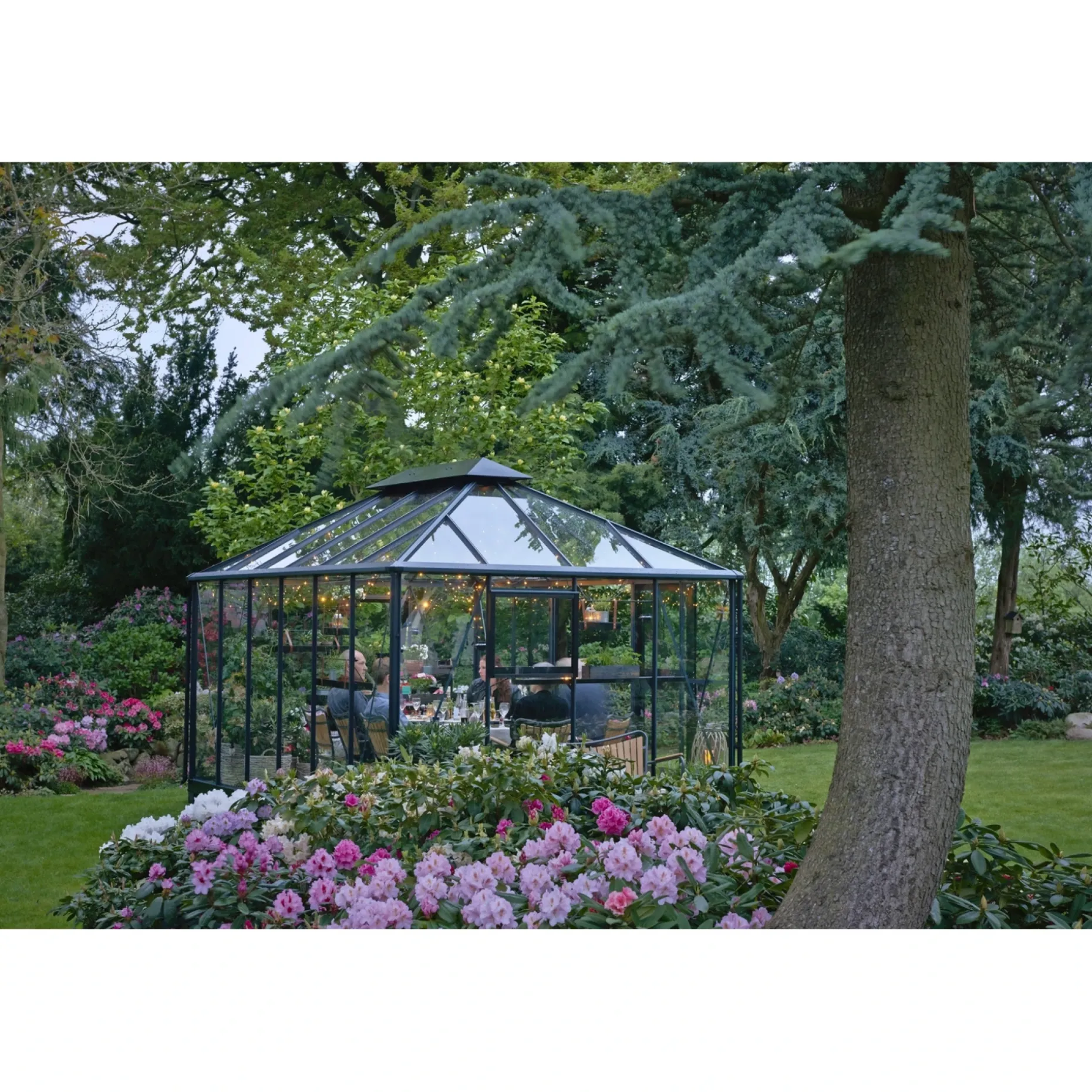 Dette drivhus passer til en rigtig drivhus-entusiast. Der er plads til hele familiens planteprojekter, som dyrkning af krydderurter, frugt og grønt. Samtidig er der også plads til at have bord og stole, hvis dette ønskes.