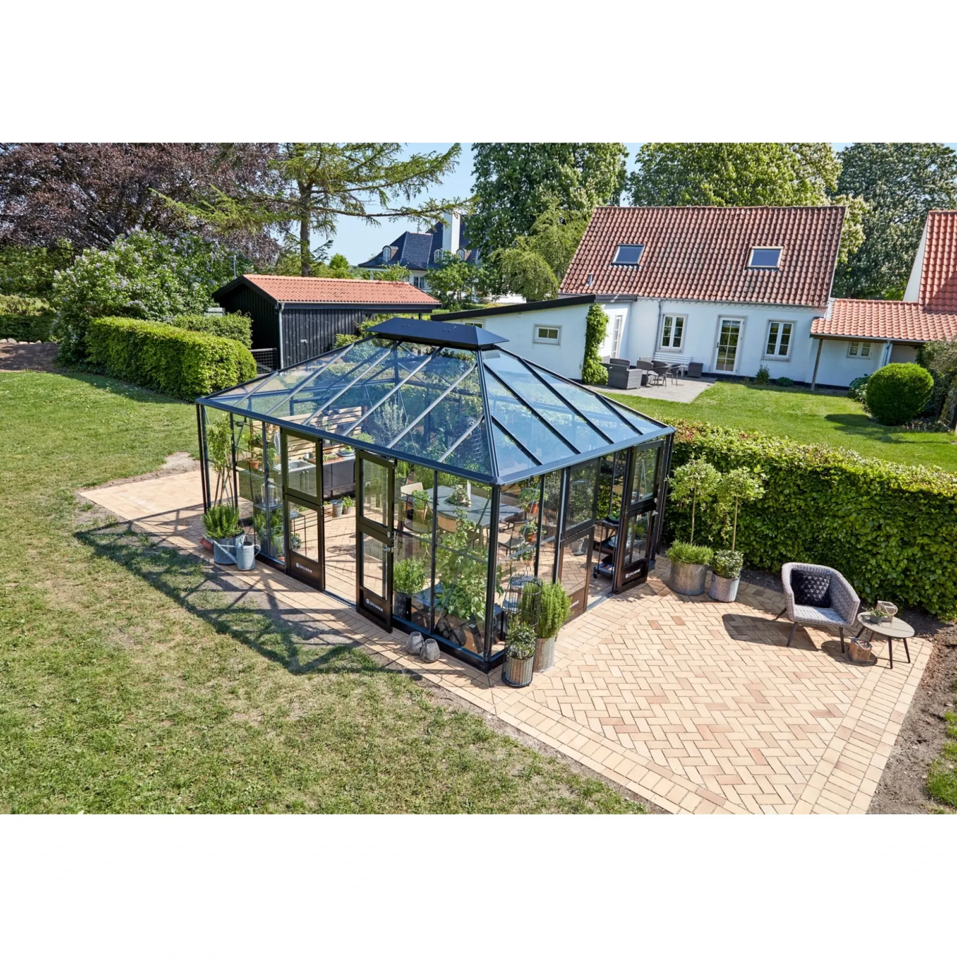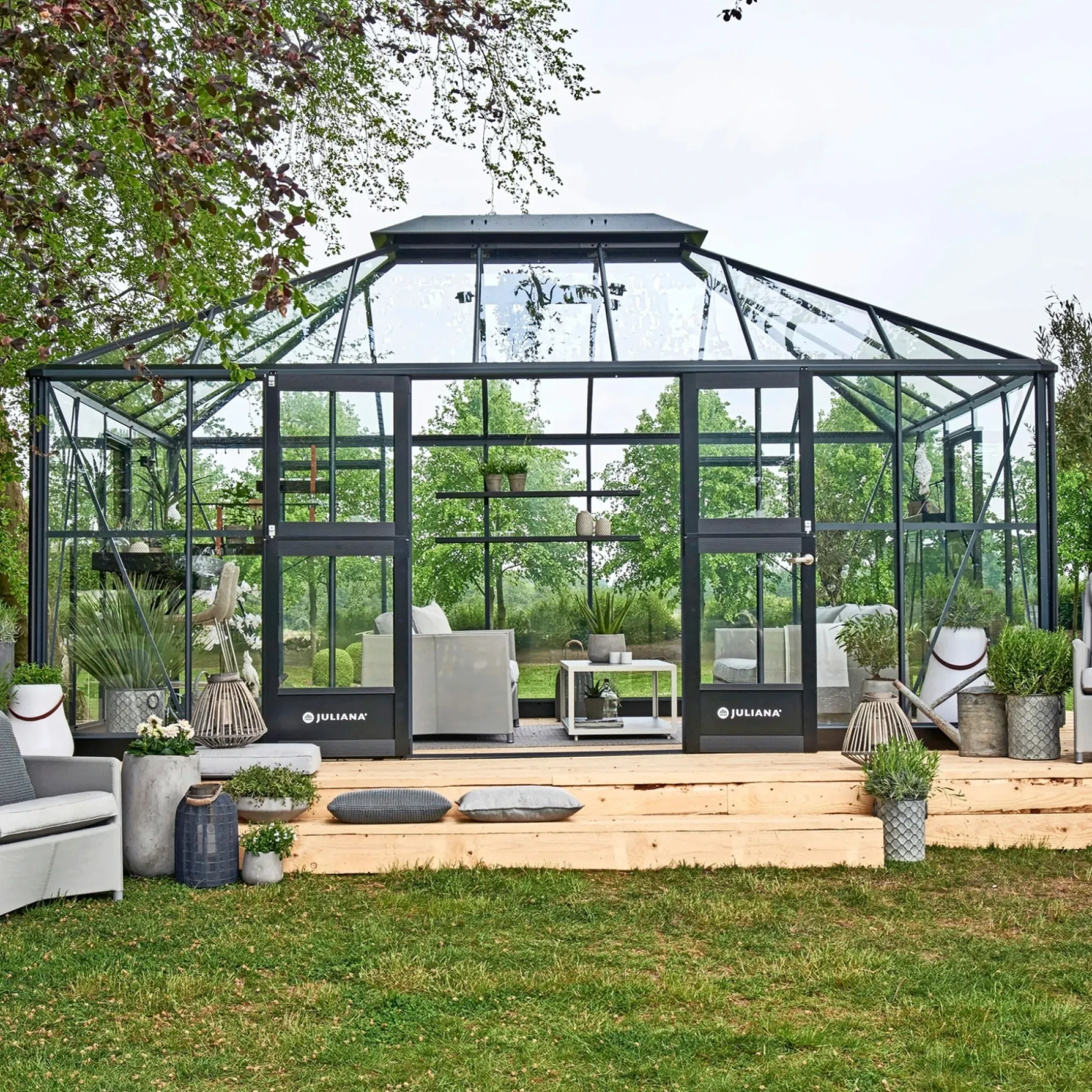 Juliana Grand Oase er drivhuset til dig, der har store drivhus-planer. Der er plads til alle familiens sunde projekter. Rum til både den aktive dyrkning af krydderurter, frugt og grønt, og rum til samvær om stort og småt til både hverdag og fest.