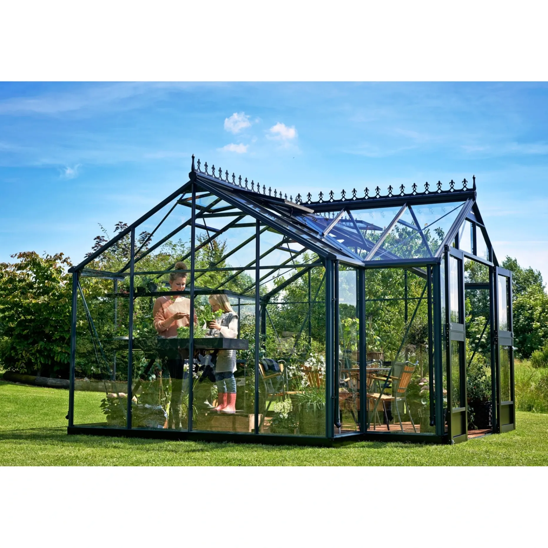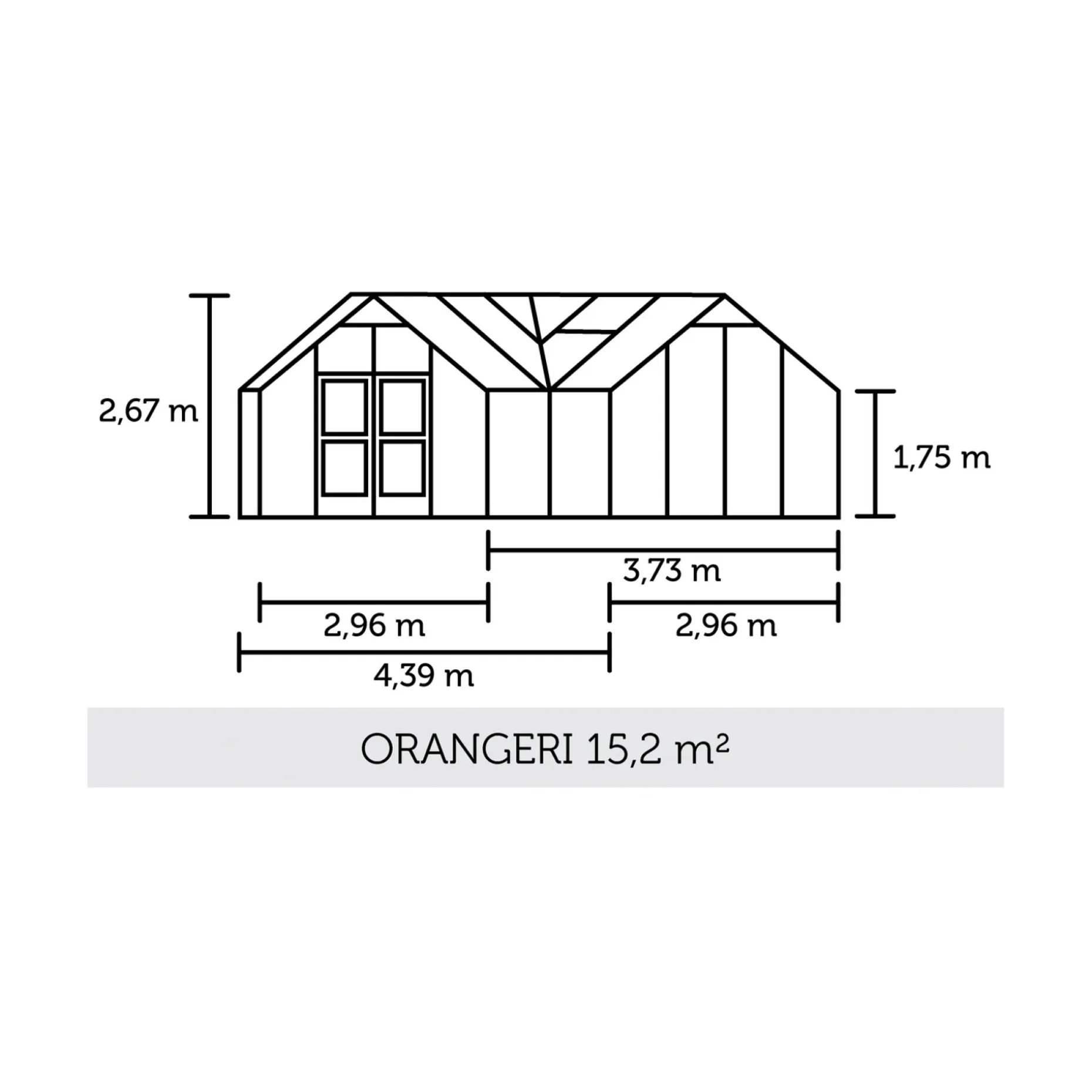 Juliana Orangeri fås i antracit/sort og leveres med 3 mm sikkerhedsglas. Der kan tilkøbes et sortlakeret fundament, der gør det nemt at montere drivhuset.