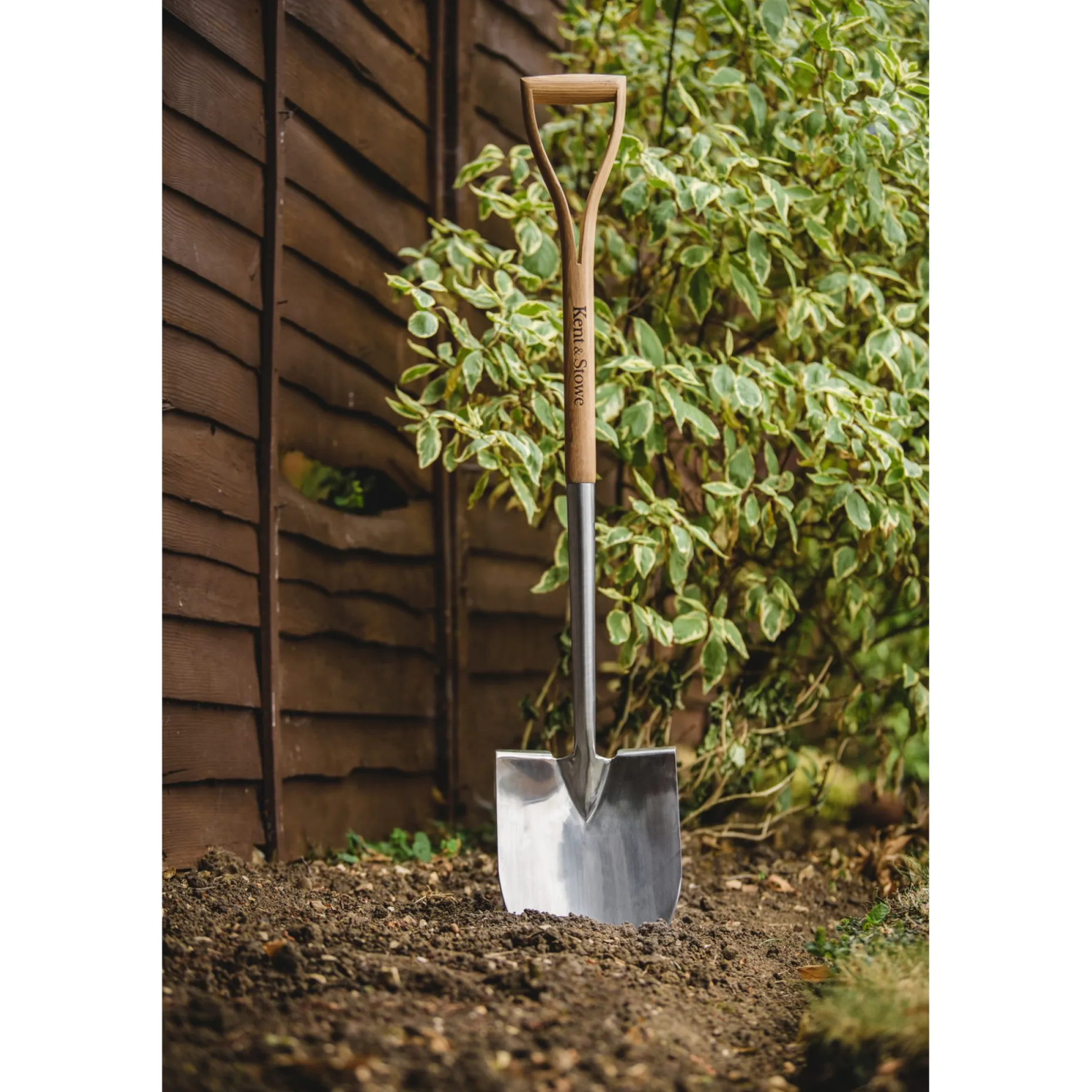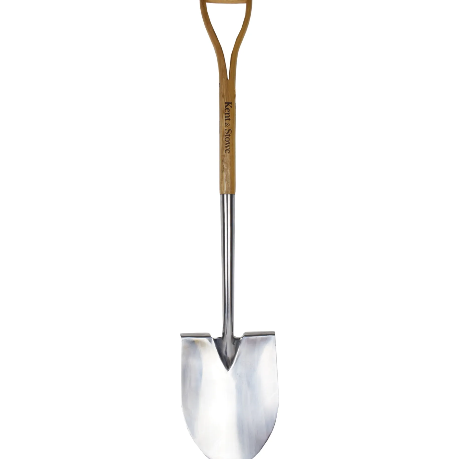 Spidsspade i høj kvalitet fra Kent & Stowe. Fremstillet af rustfrit stål og asketræ.