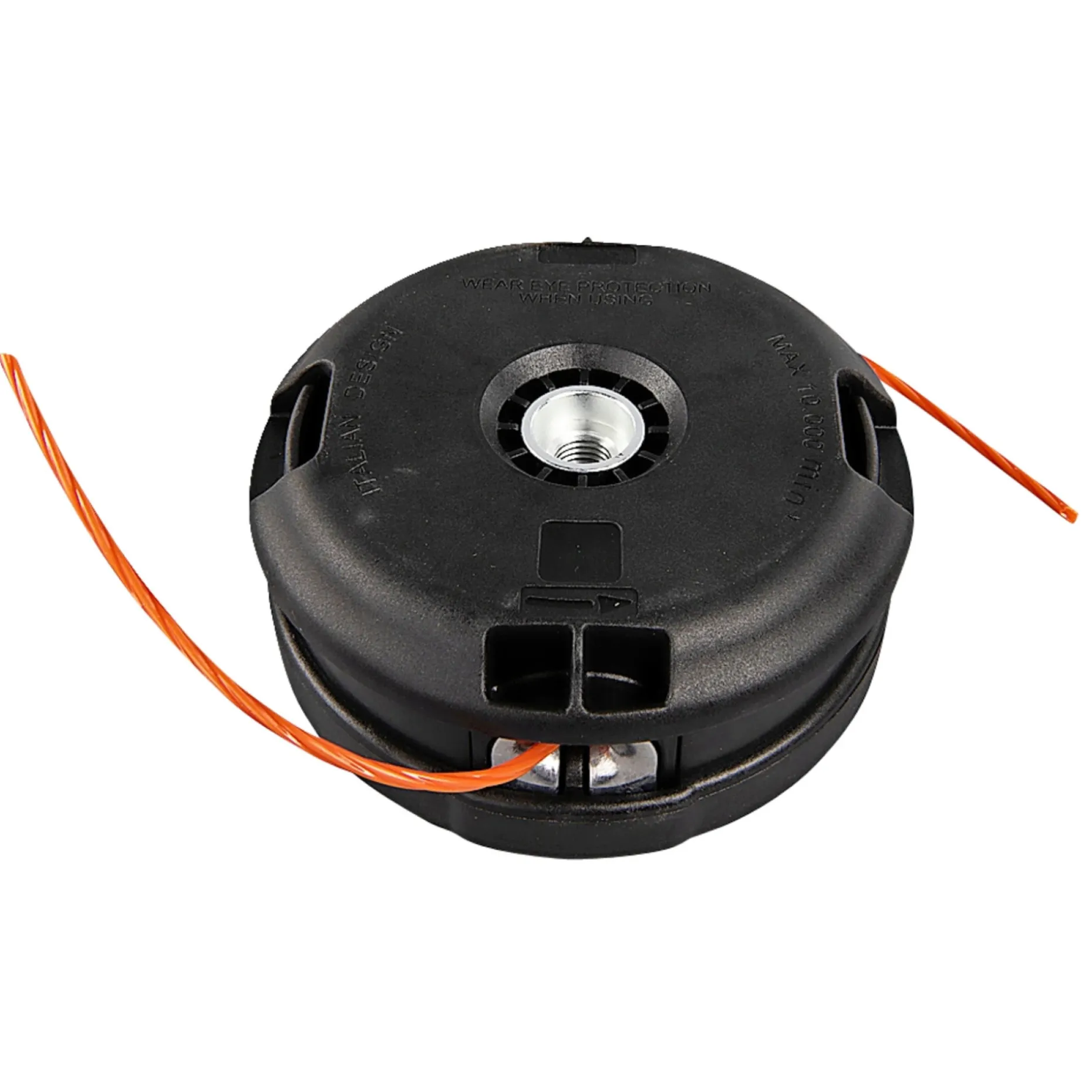 Tap & Go trimmerhoved 191D90-9 gør det enkelt at skifte og oprulle ny trimmertråd. Tråden trækkes igennem trimmerhovedet og rulles simpelt ind, så du kan genoptage arbejdet hurtigere. Systemet reducerer tidsforbruget ved trådskift betydeligt og sparer op til 60% tid sammenlignet med normale trimmerhoveder. Denne enkle oprulningsmetode er velegnet til kantklipning, trimning omkring bede og vedligehold af græsarealer. Både nybegyndere og erfarne gør-det-selv’ere kan nemt håndtere trådskift uden komplicerede procedurer. Mindre tid på vedligehold betyder længere sammenhængende arbejdstid og færre afbrydelser i projektet. Trimmertrådens diameter er 2,4 mm, hvilket sikrer stabil trådføring og ensartet klippekvalitet. Gevindet er M10 x 1,25 LH, tilpasset maskiner med venstrehåndet gevind. Fordi oprulningen gøres direkte i trimmerhovedet, bliver processen intuitiv for brugeren. Det betyder mindre behov for værktøj eller ekstern assistance ved trådskift, især nyttigt ved arbejde langs hække, indkørsler og store græsflader. Med en pålidelig tråddiameter på 2,4 mm får du ensartet klipning gennem hele arbejdet.