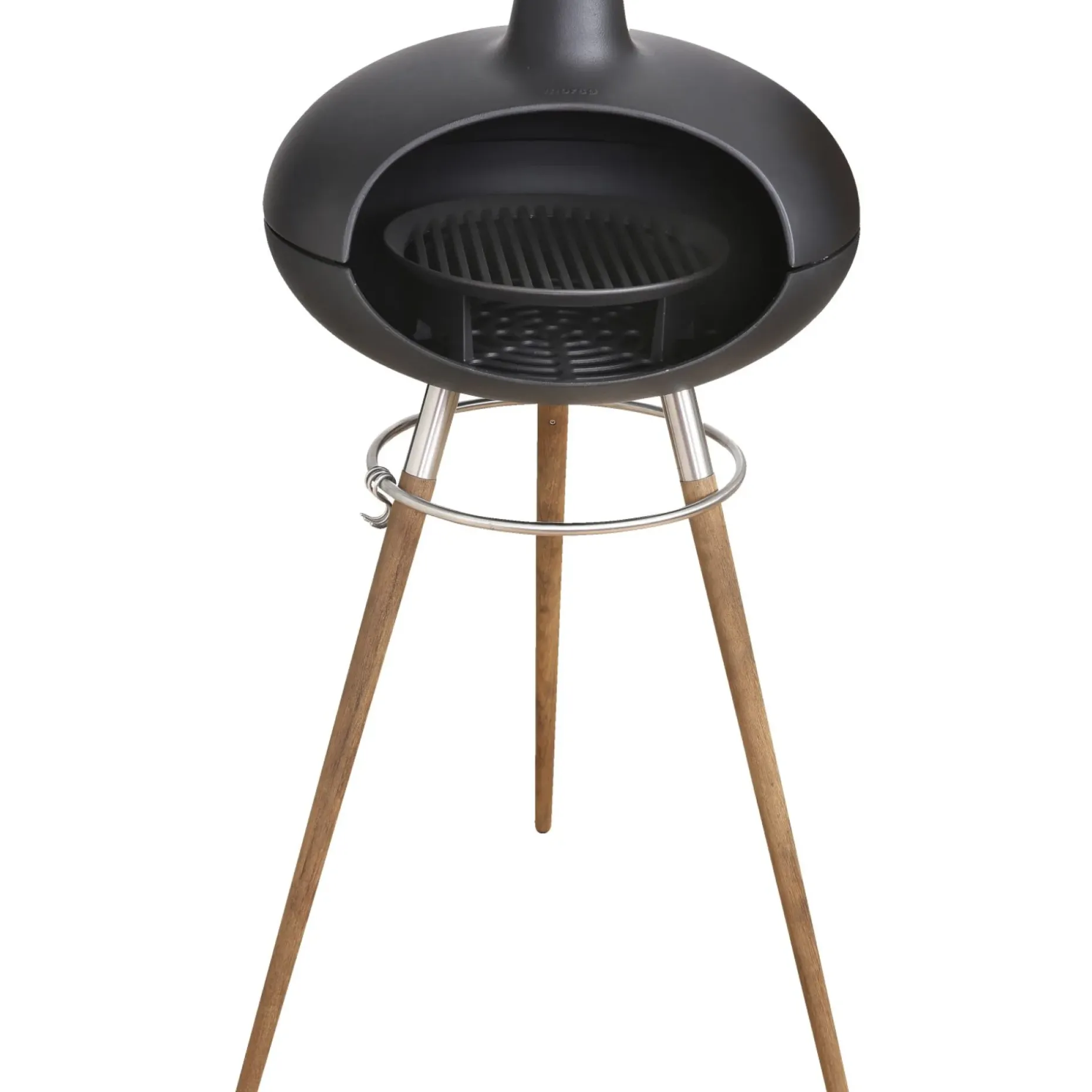 Den større åbning til ovnrummet giver bedre plads til at arbejde med maden og et større indkik til flammerne, hvilket øger madoplevelsen og hyggen omkring bålet. Træbenenes placering er drejet 180 grader, så du nemt kan komme tæt på fronten ved afkøling eller ved tilberedning.