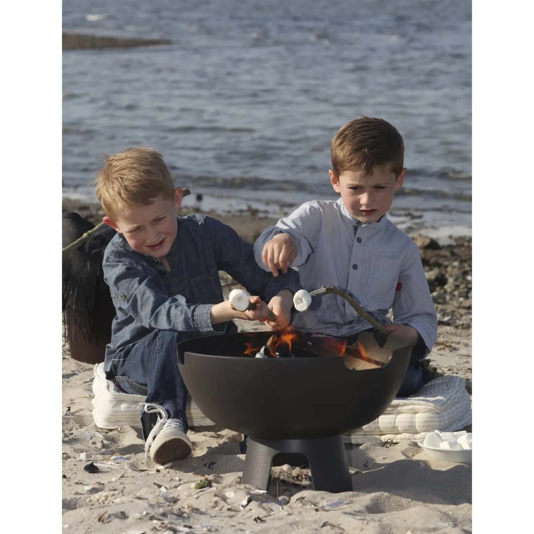 Det fungerer både som varmekilde på kølige sommeraftener og som dekorativt element ved terrassen eller ved fordøren året rundt. Bålstedet er fremstillet i solidt, emaljeret støbejern, hvilket giver en robust overflade, der ikke ruster, hvis produktet anvendes og plejes korrekt.