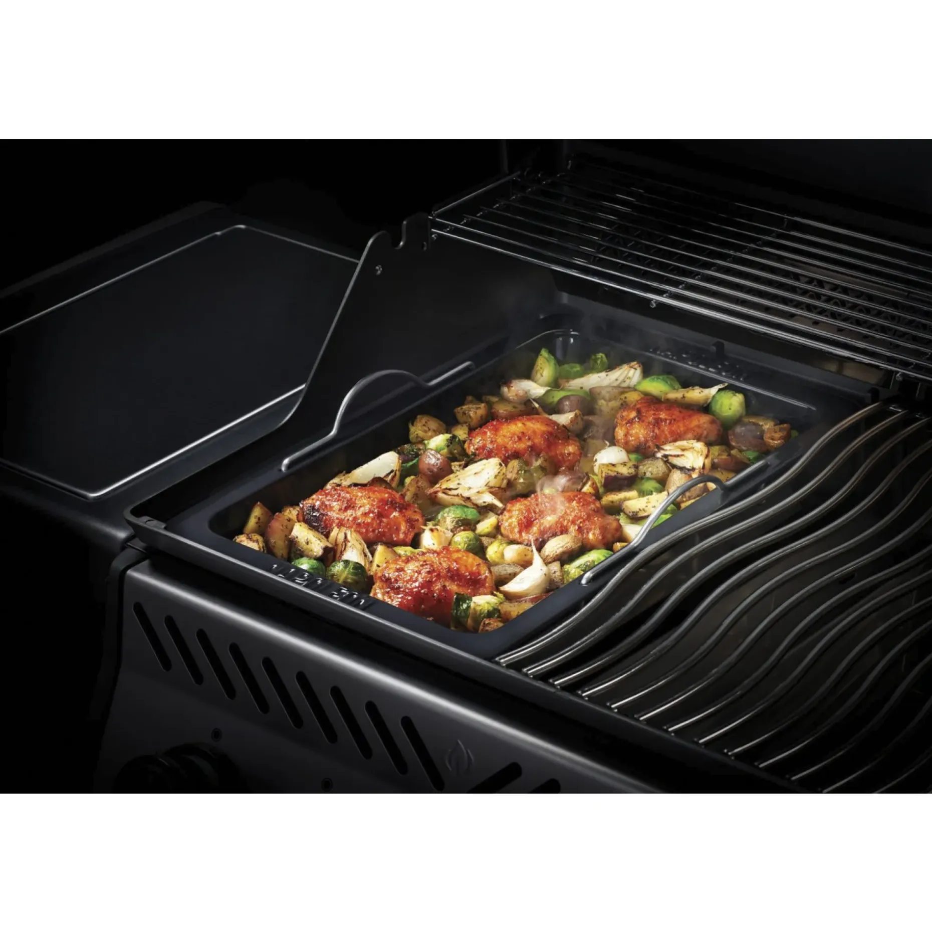 Bradepanden fra Napoleon er et lækkert grilltilbehør, der sikrer flere anvendelsesmuligheder til grillen. Fjern grillristene og placer bradepanden direkte i grillen som en drop-in emaljeret løsning i sort.