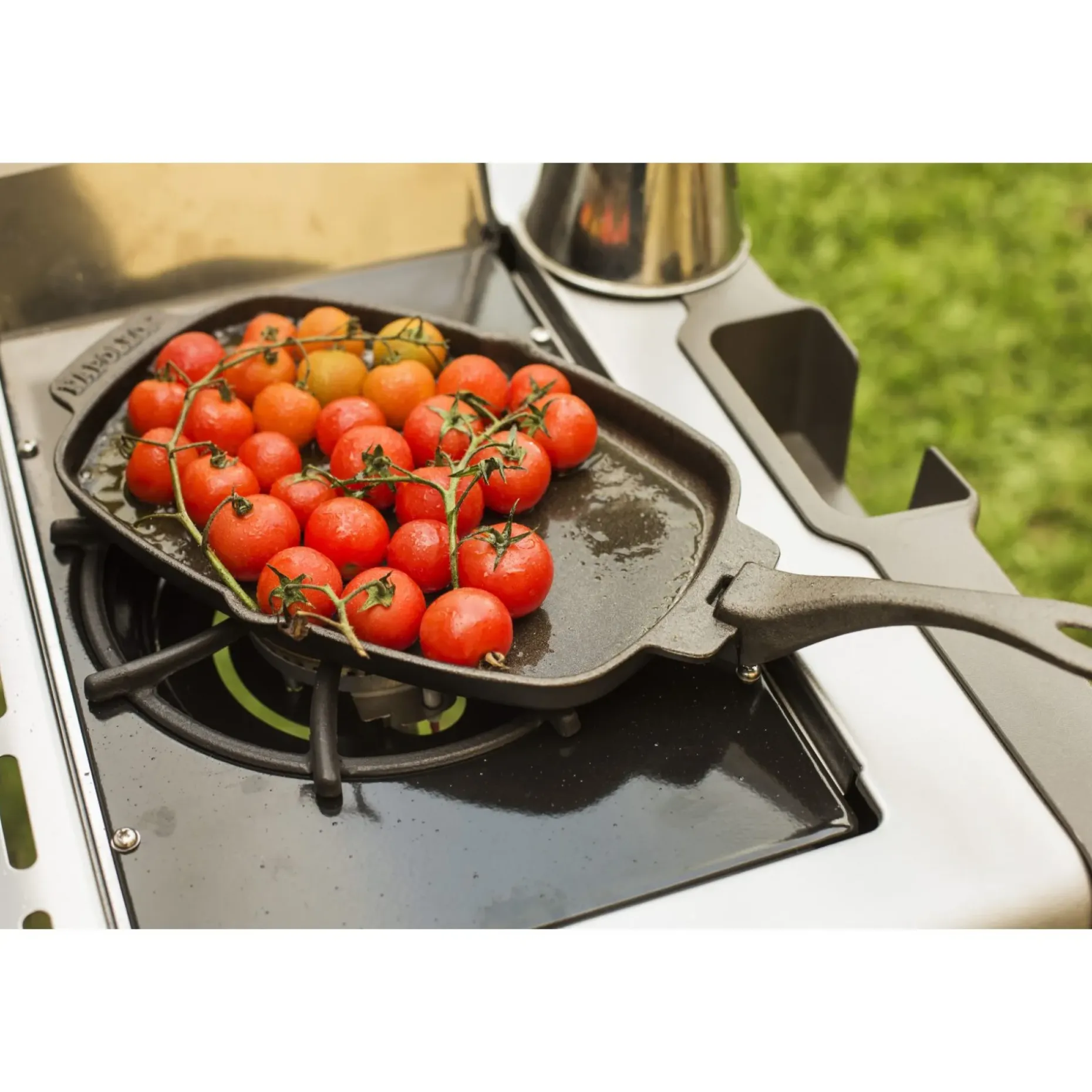 Napoleon PRO sizzlepande i støbejern giver kraftig stegeskorpe og jævn varmefordeling, så kød, fisk og grønt får forbedret smag og stegeresultat. Den slidstærke non-stick overflade gør det lettere at rengøre.