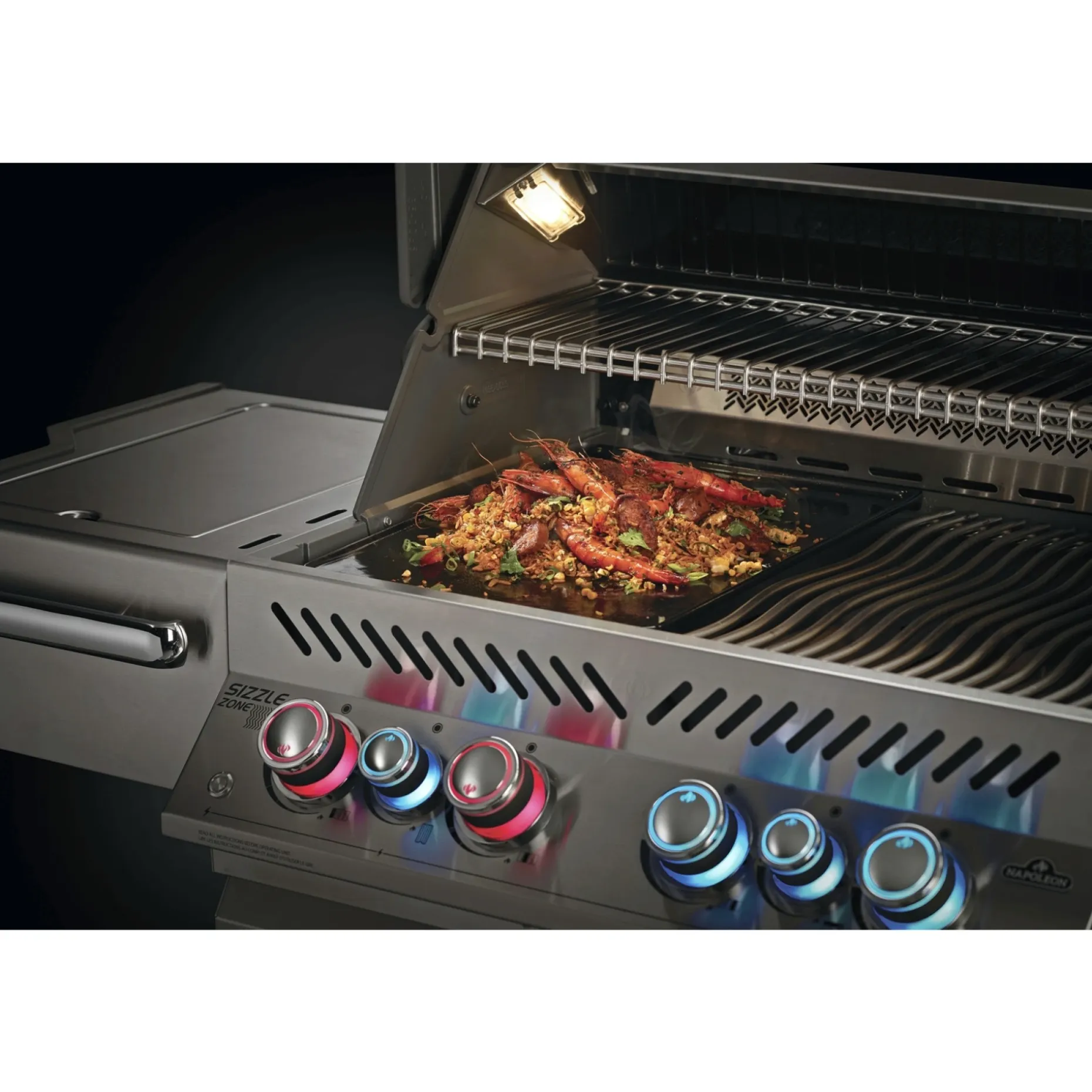 Emaljeret støbejernsstegeplade i vendbart design giver fleksibel tilberedning på gasgrillen. Brug den rillede side for tydelige WAVE-grillstreger på bøffer og pølser, og den glatte side til retter som biksemad, spejlæg og pandekager.