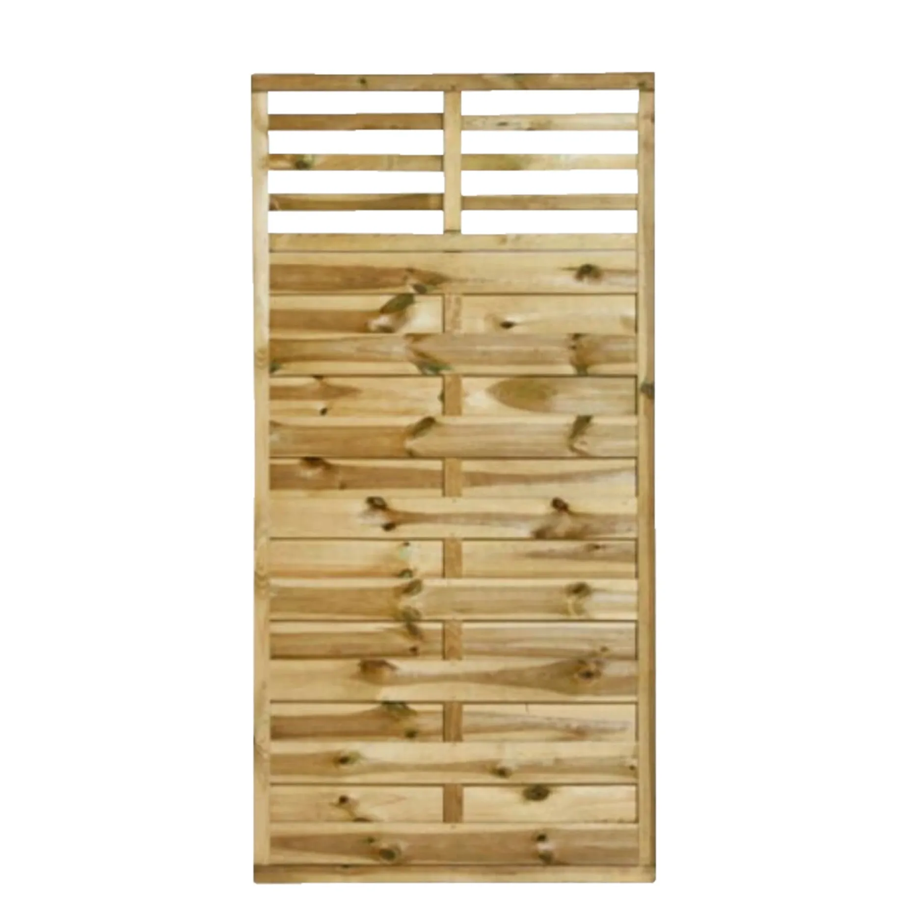 Klassisk læ- og skelhegn, lukket hegn med espalier i toppen. Trykimpræneret. 90×180 cm.