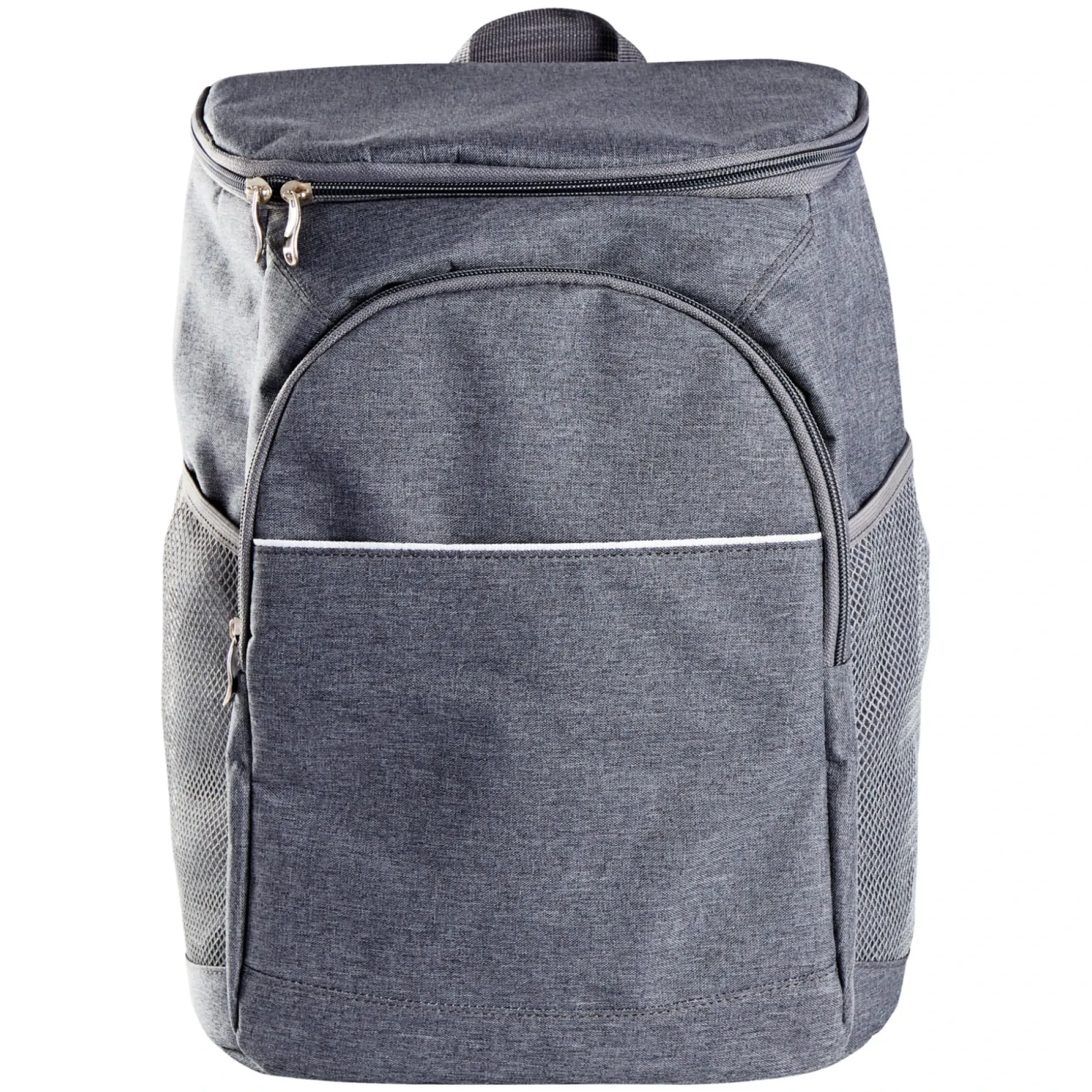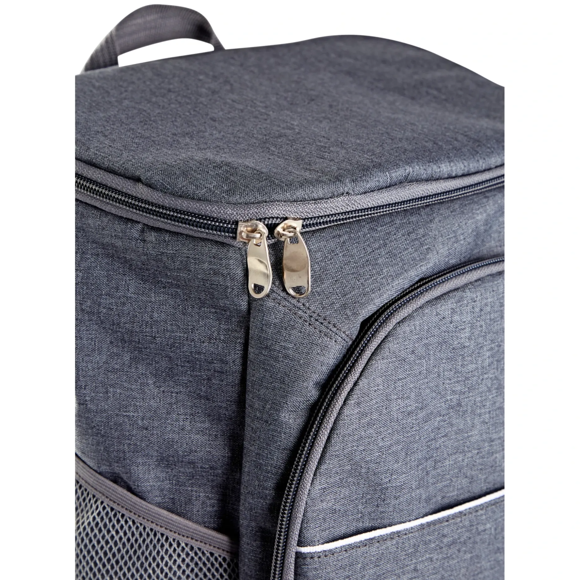 Bæres som rygsæk. Med udvendig lynlåslomme og sidelomme til flaske. 100% grå polyester.