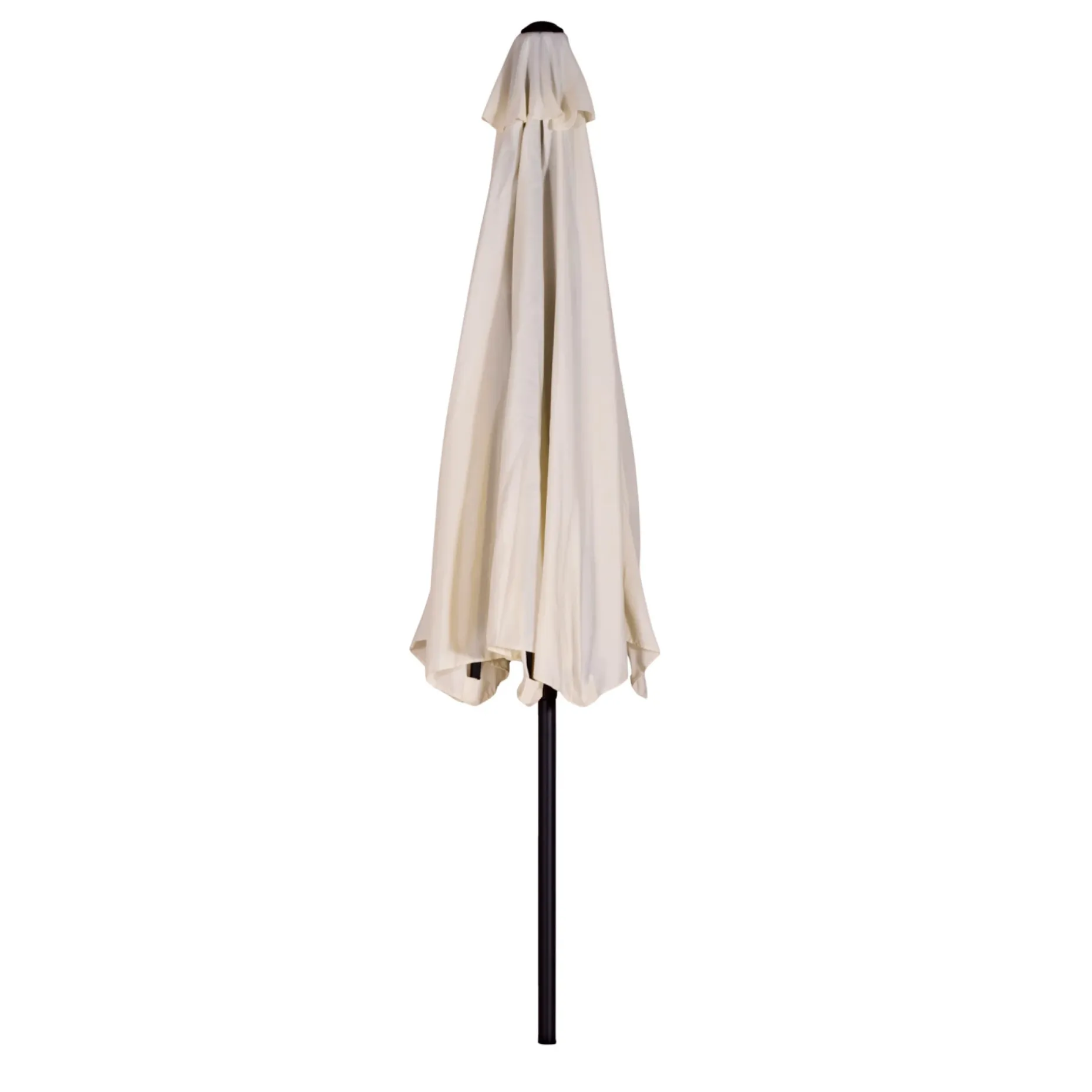 Naturfarvet 100% polyesterdug med 2-delt stålstok og håndsving.