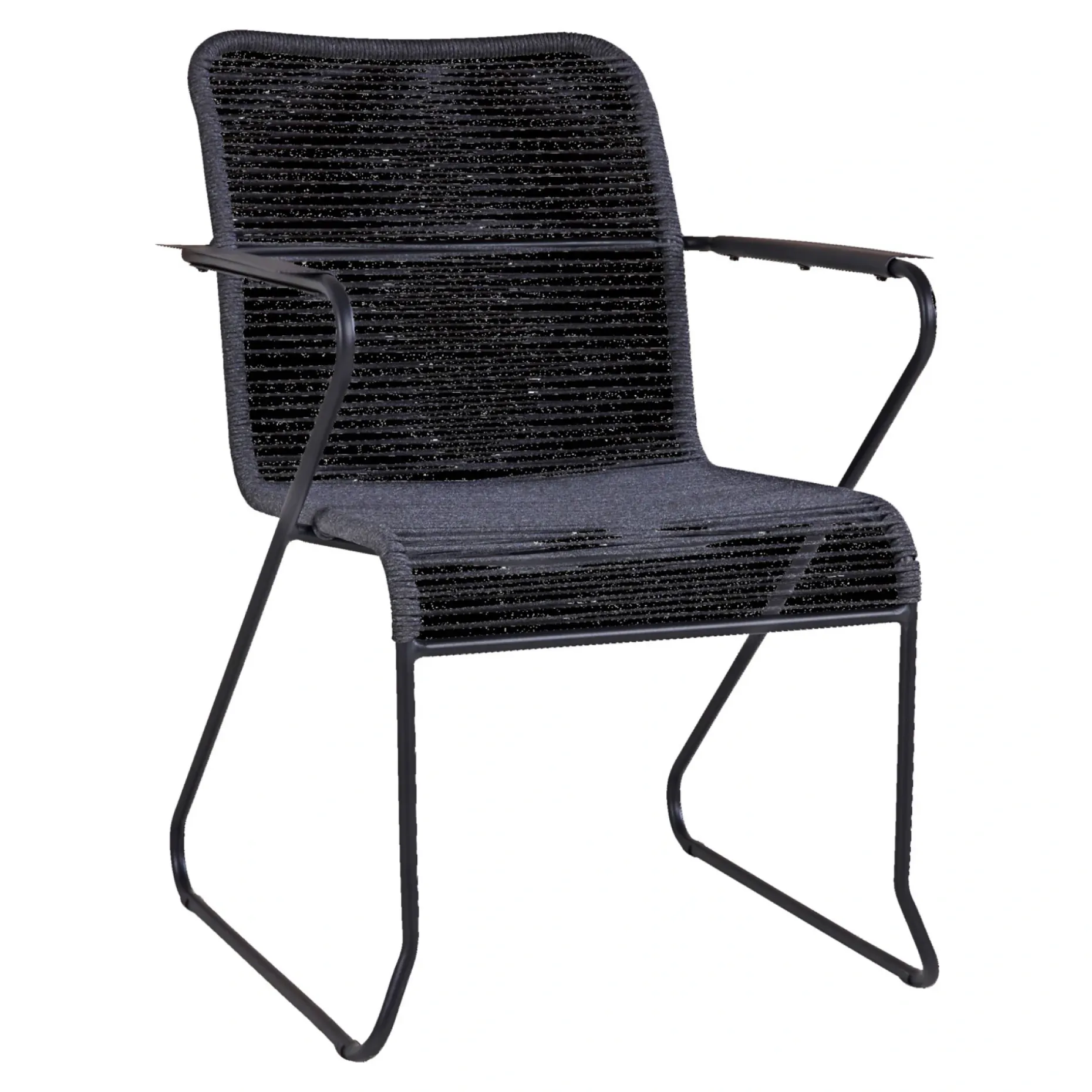 Stol med antracitgrå rebflet og sort pulverlakeret stålstel.